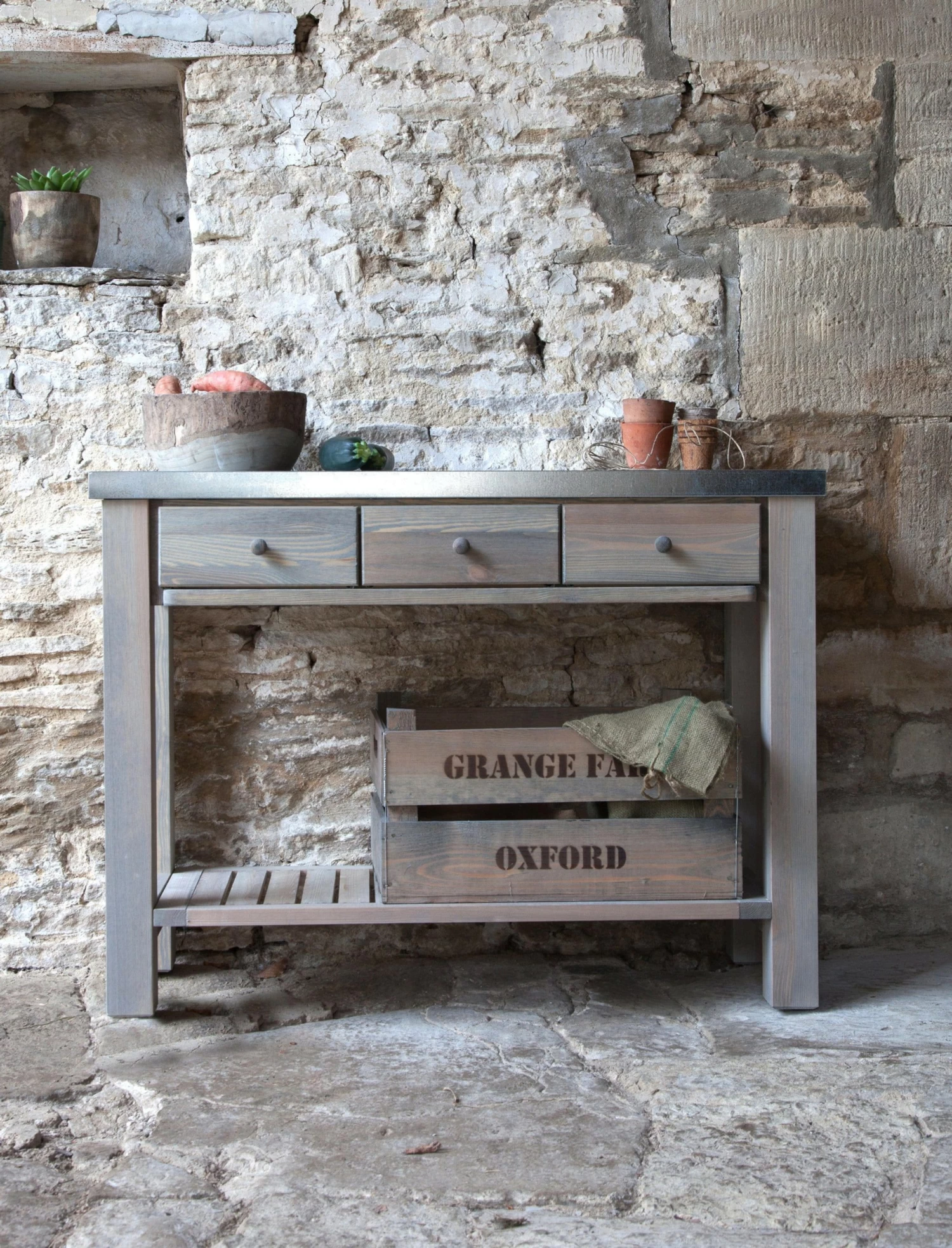 Make the homely task of sowing seeds more pleasurable with our specially designed Aldsworth Potting Table. Crafted in untreated Spruce, it’s finished with a hardwearing galvanised sheet metal worktop. With three spacious drawers and a versatile slatted shelf it provides room for storing pots, seeds, string and plenty of other gardening essentials. Enjoy its charmingly rustic appearance both indoors and out whether placed in the potting shed, garage, utility room or kitchen. We’ve kept the wood natural allowing the smooth surfaces and visible wood grains to become prominent features.