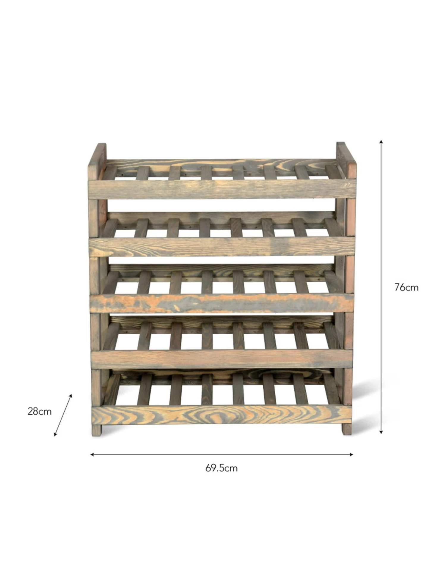 Holding 35 bottles this rustic Aldsworth Wine Rack provides ample room for favourite vintages. Crafted from Spruce it’s both sturdy and lightweight and has been finished with a grey water stain. This gives an overall soft appearance allowing the wood grains to show through. Inspired by vintage bakery racks, We’ve taken traditional aspects to create a free-standing wine unit. The simple shape and clean lines offers a lovely natural way to display a selection of wine. it’s designed to store each bottle at an angle, ensuring the cork is kept moist.