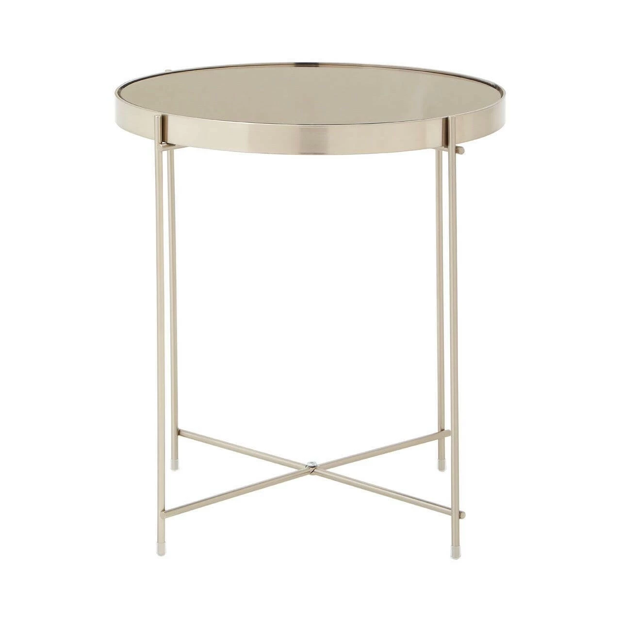 This contemporary side table features a grey finish mirrored top which is inset to a coordinating band of brushed nickel metal. The tabletop is supported by four tubular legs, their slim and unfussy design adding a touch of minimalism to the table’s aesthetic. Its sleek look makes it suited to coordination with boutique hotel furniture and accessories.