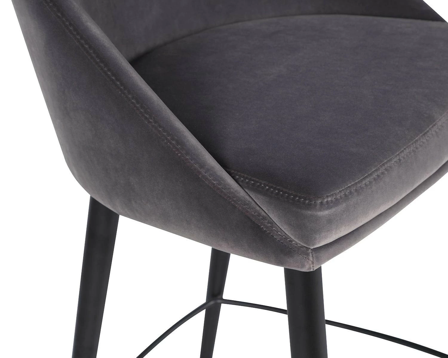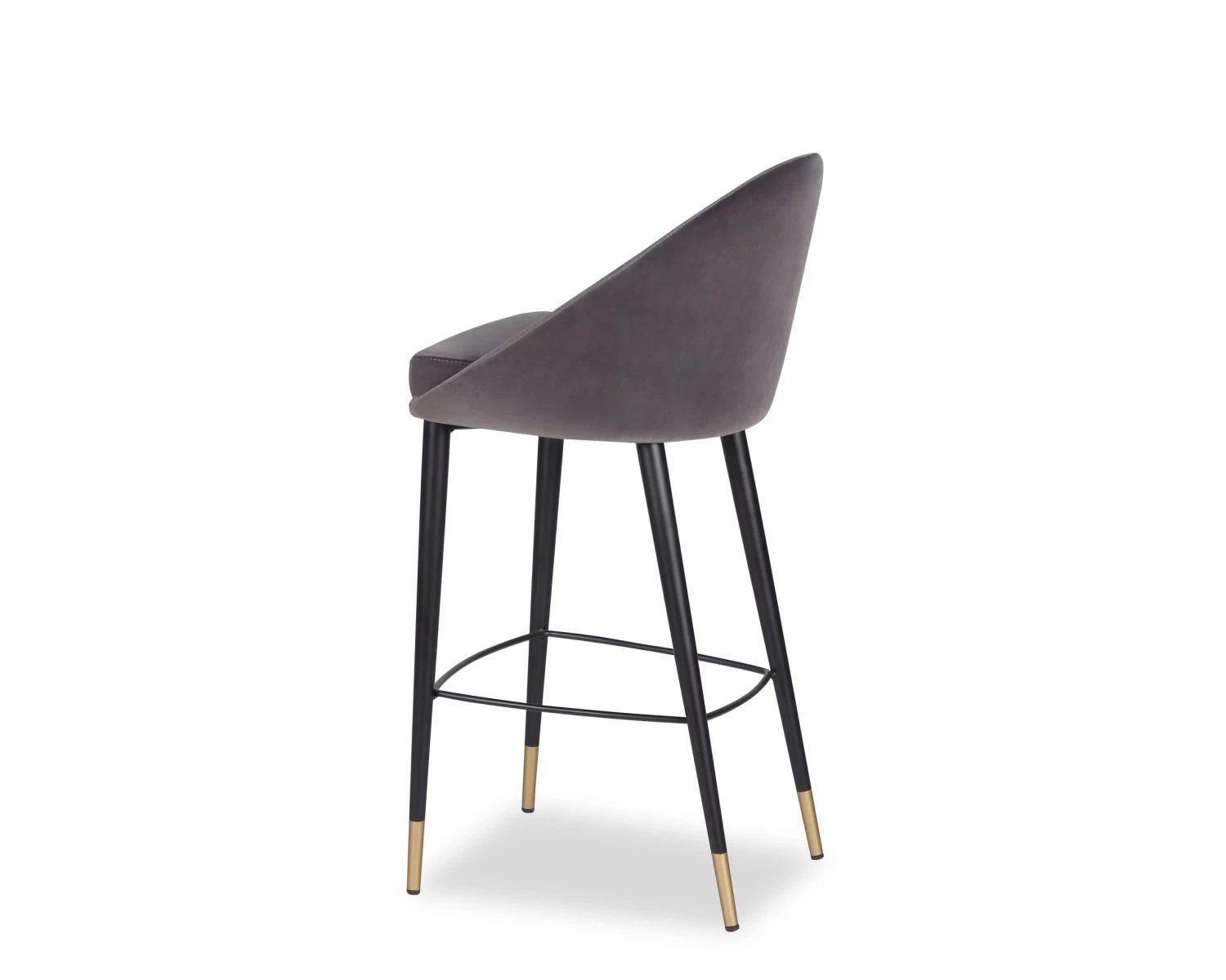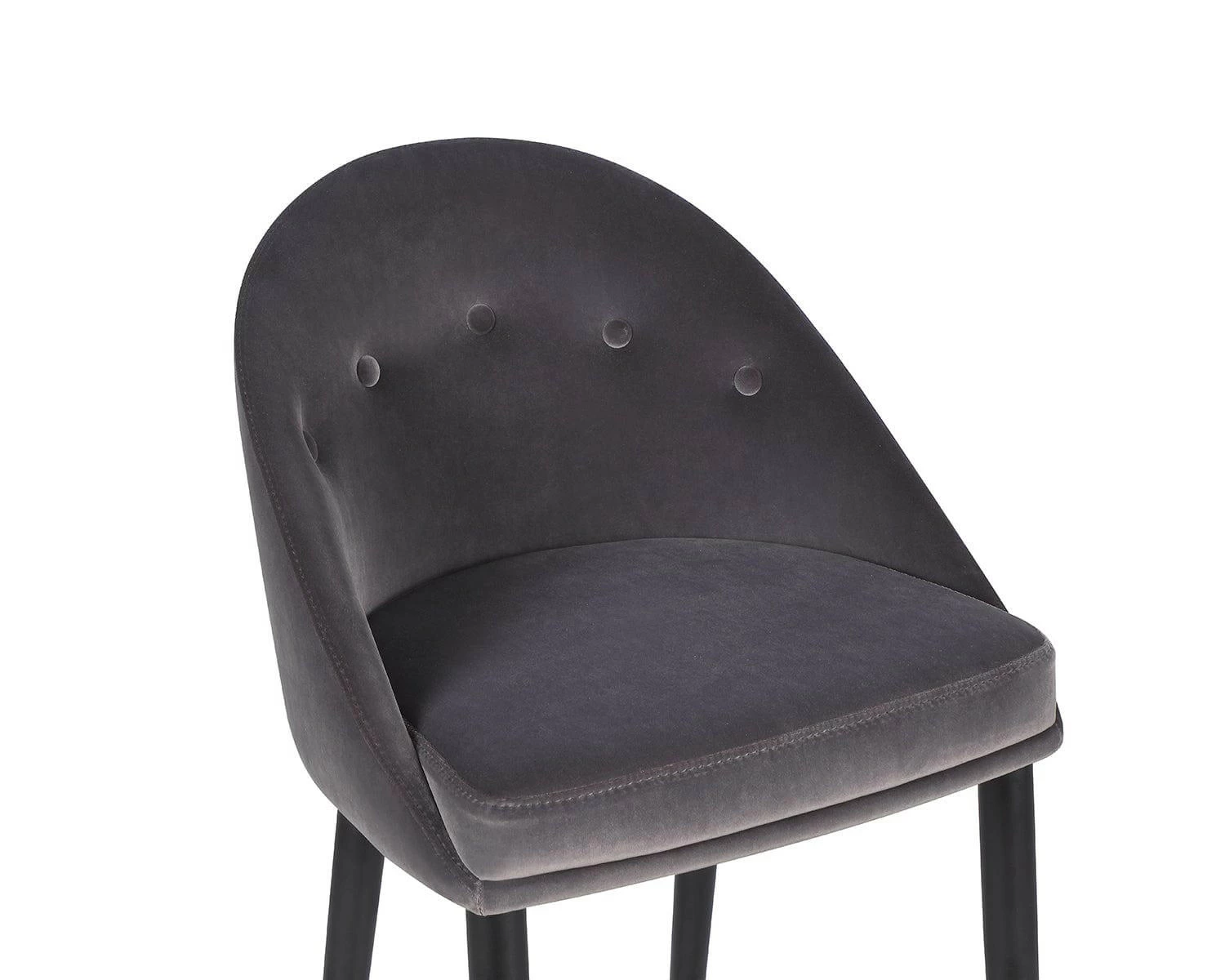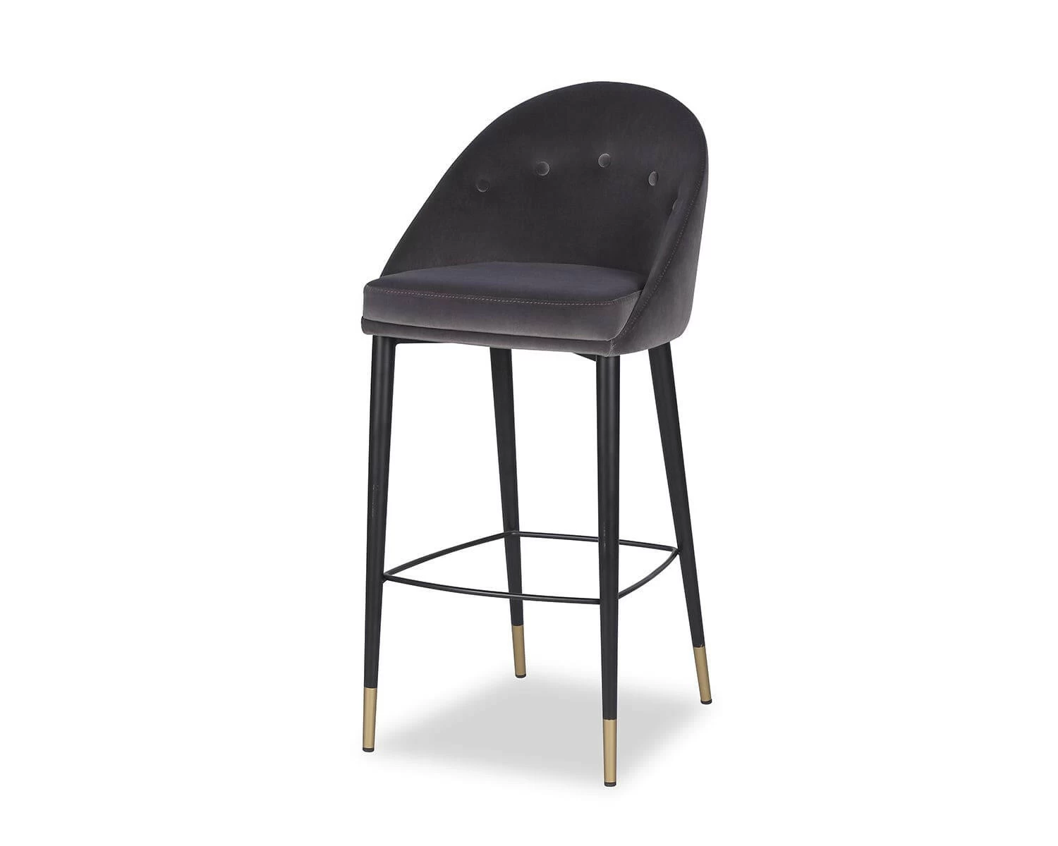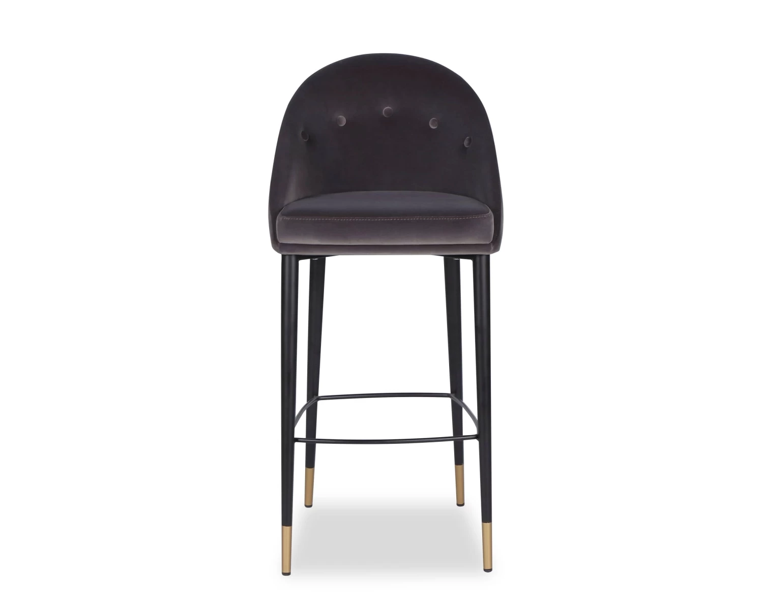 Gainsborough Nickel Grey velvet, Brass Finish Accents, Black Legs Upholstered in Gainsborough Nickel Grey velvet, the Arden stool adds a classic style to any home interior and exudes luxury from all angles. With its delicate stitching and button seat back, the bar stool is finished with black legs and brass tipped feet to provide an elegant look.