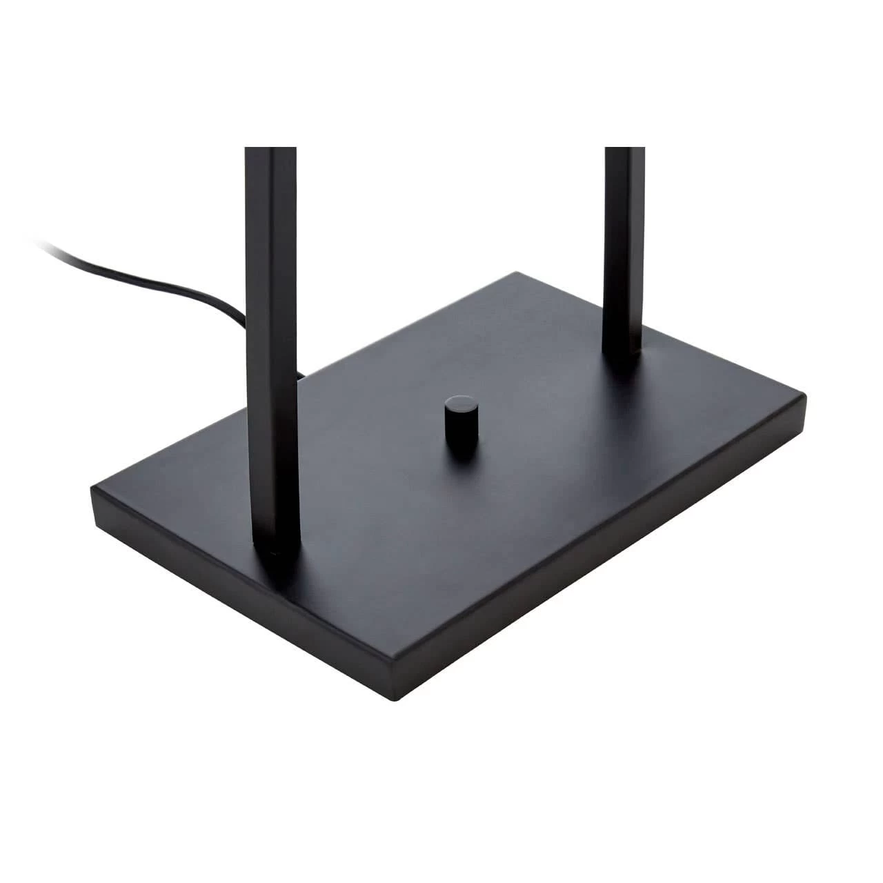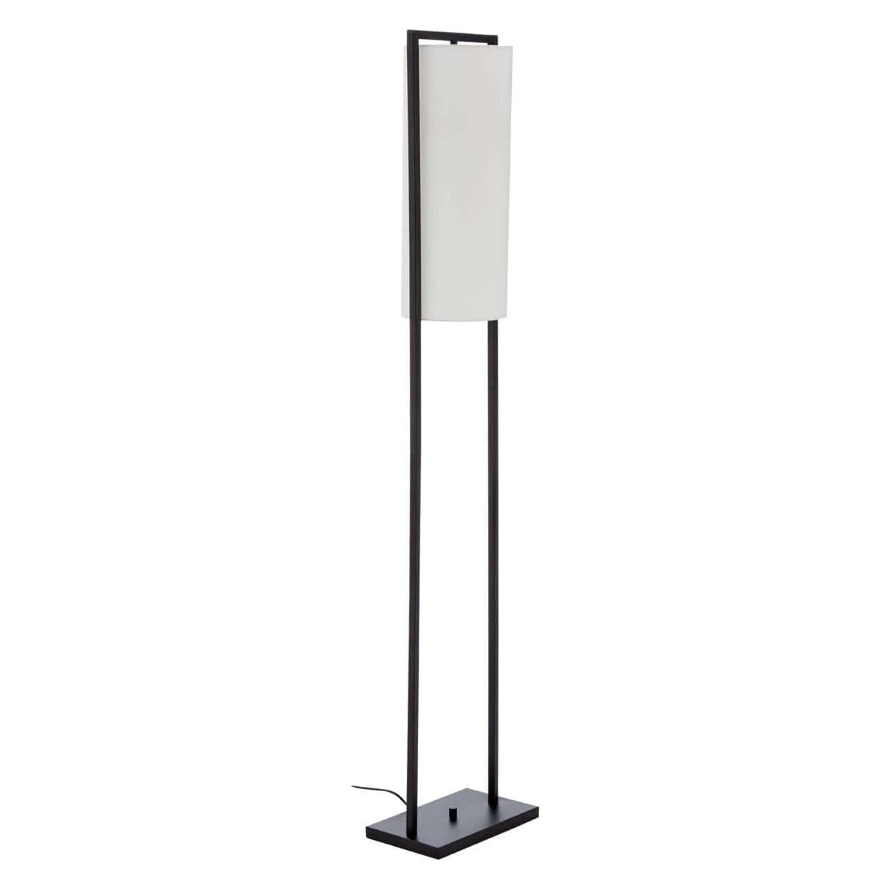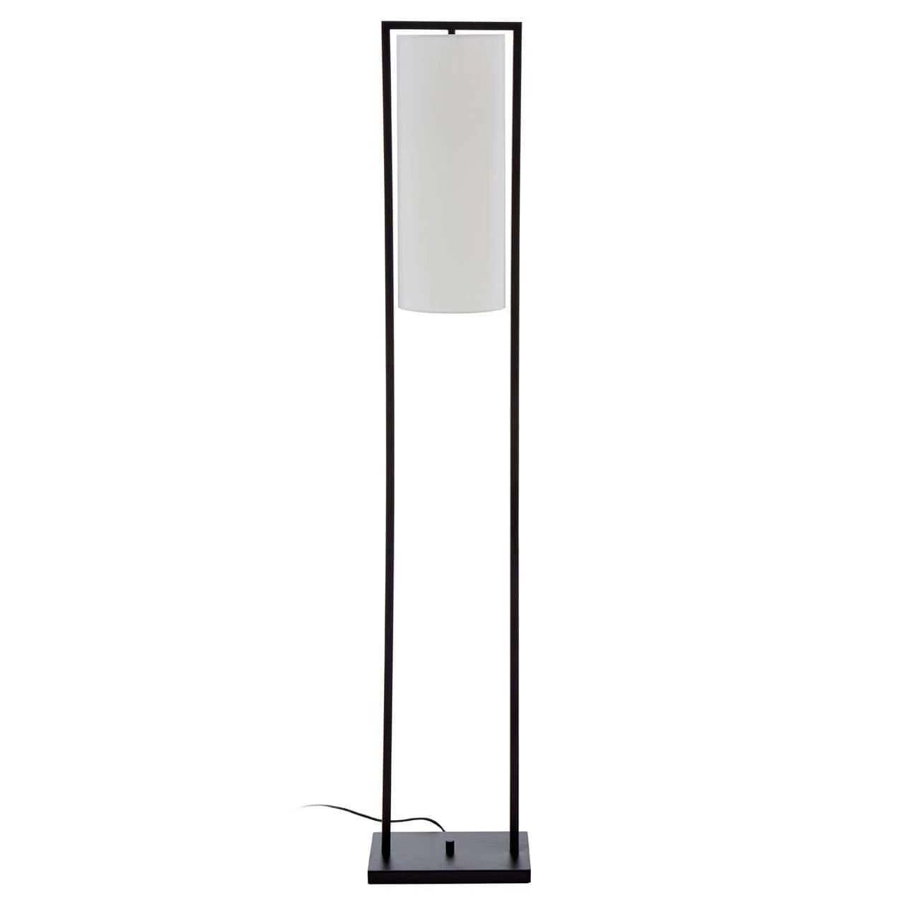 From the lamp’s rectangular frame drops a cylindrical shade made from crisp white linen. The contrast between light and dark creates a complete sense of balance.