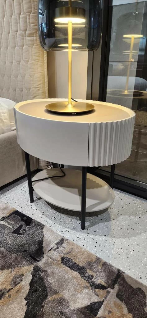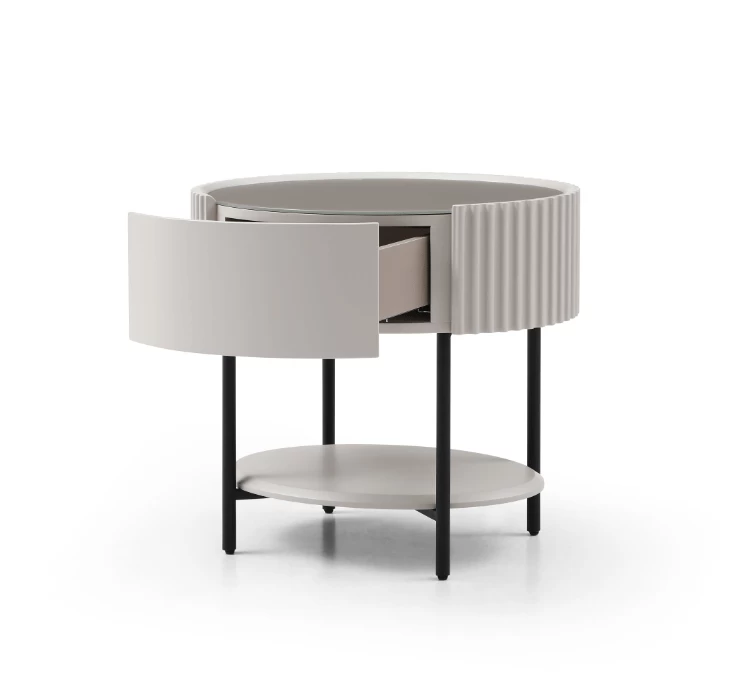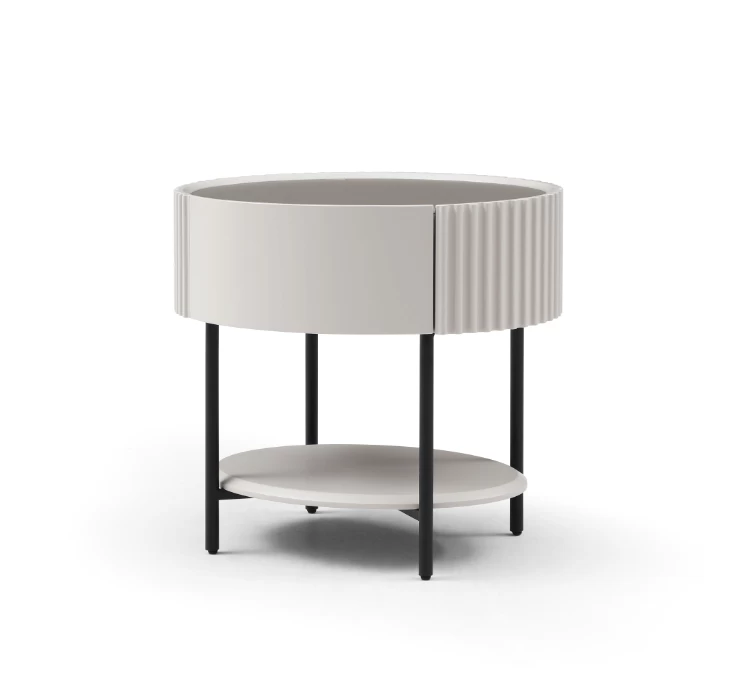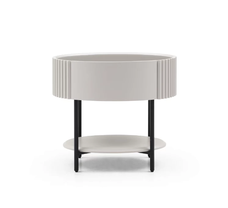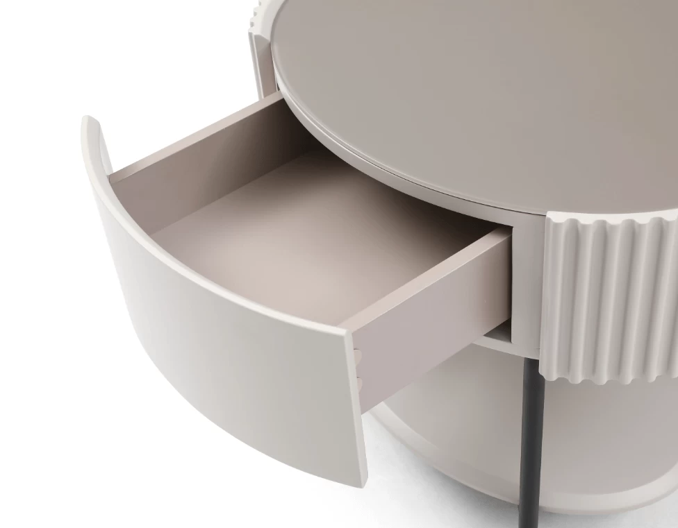 The Avola Bedside Table features a beige lacquer cabinet that exudes understated elegance. The neutral beige tone creates a sense of calm and tranquility, harmonizing effortlessly with a variety of color palettes. The lacquered finish adds a subtle sheen to the cabinet, imparting a touch of refinement to the overall design. The cabinet’s soft close drawer ensures a gentle and quiet closing, while providing ample storage space to keep your belongings organized and within easy reach. To complete its contemporary look, the Avola Bedside Table is supported by black powder coat metal legs.
