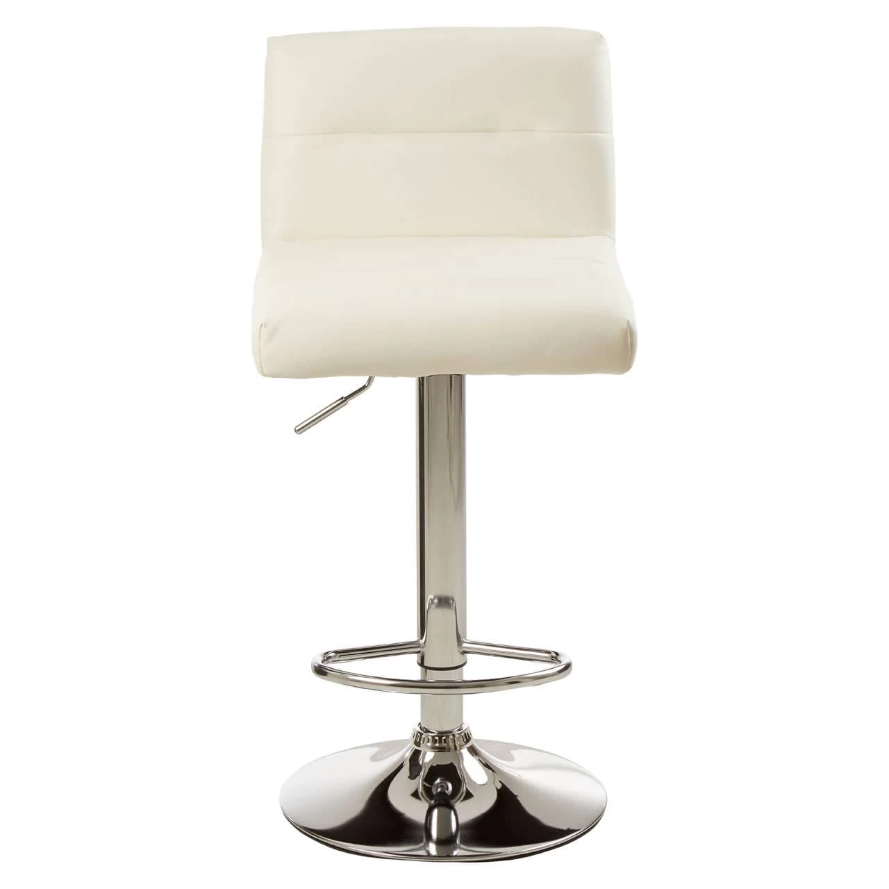 The chair has a simple armless design and sports a horizontal channel tufted design. The soft faux leather is coloured white to create a contrast with the metallic chrome finish stand and base. A lever beneath the seat allows the height to be adjusted effortlessly, and a wedge-shaped footrest is integrated into the design for added comfort.