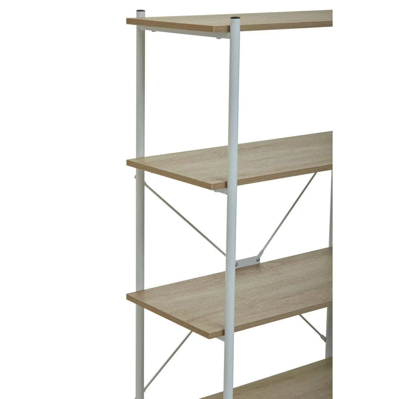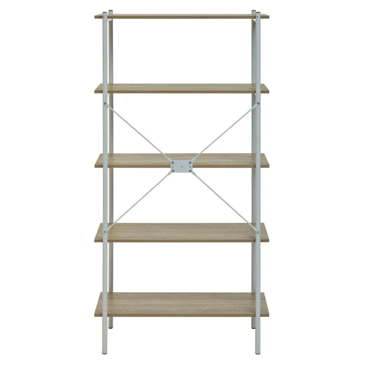 This five tiered shelf is a versatile unit that can amplify any room’s appearance with its subtle industrial style. The sturdy metal frame has a black powder coating that creates a contrast with the natural oak chipboard ledges.