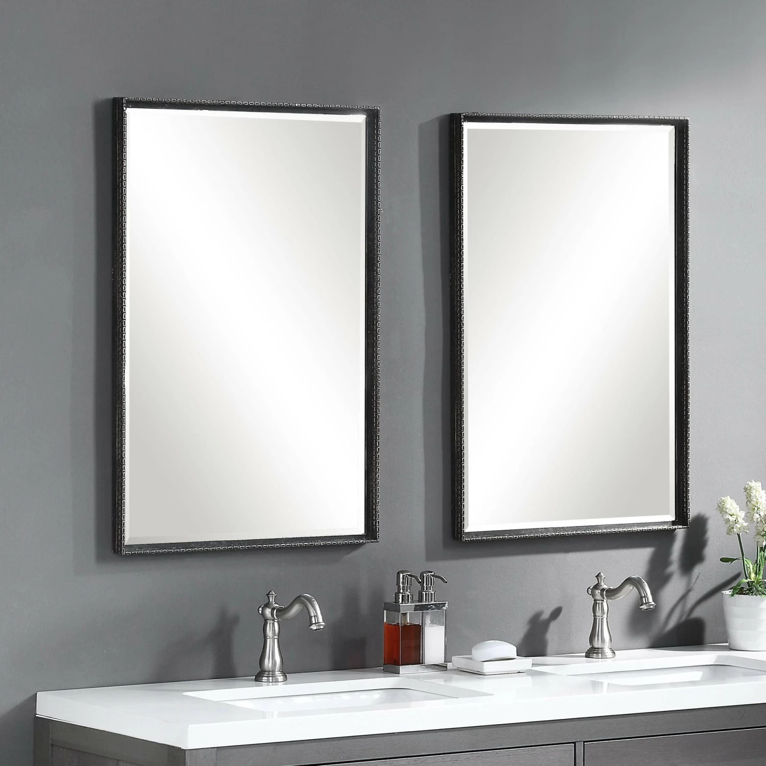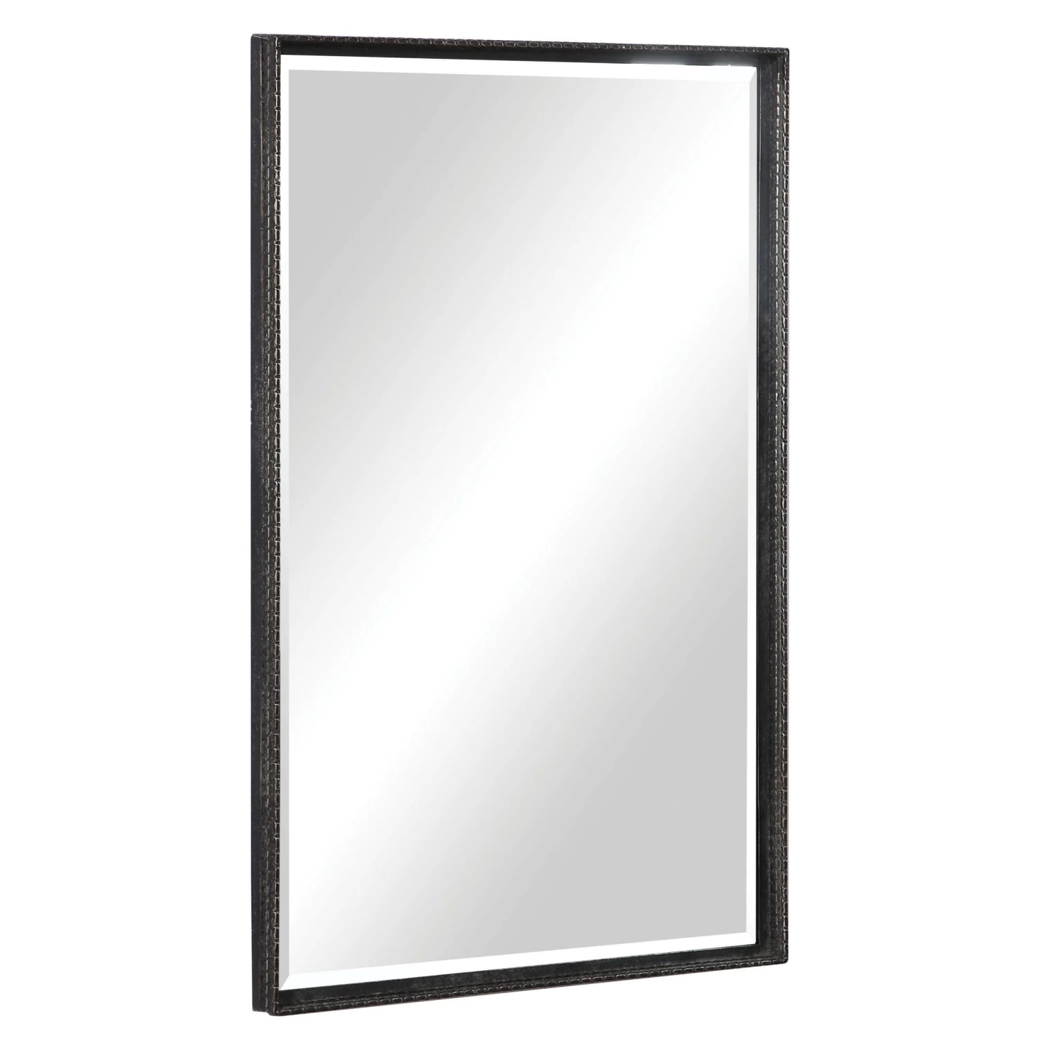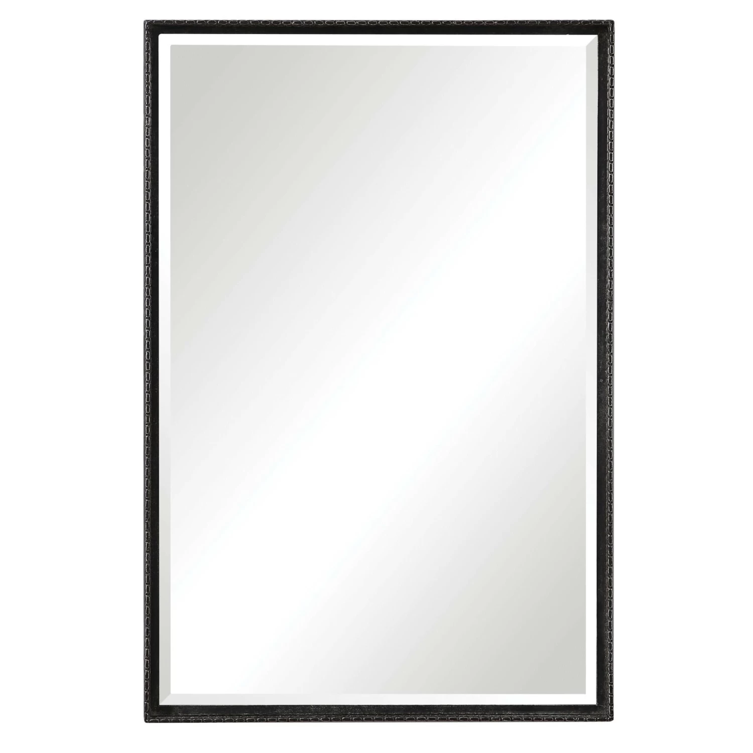 This Simple Vanity Mirror Features An Iron Construction With Detailed Edges. The Slight Profile Frame Is Finished In A Distressed Rustic Black With Aged Champagne Highlights. This Mirror May Be Hung Horizontal Or Vertical. Uttermost Uttermost is a family owned and managed US interior brand with an extensive range of furniture , lighting & accessories with an upscale luxury aesthetic. We have some of the of the most talented designers in the industry creating fresh and unique complimentary collections to beautify your home. While we are focused on bringing you the most fashion-forward products in the industry, we know that good design means nothing without quality manufacturing. You can be certain that no shortcuts are taken in manufacturing to make sure our products exceed expectations.