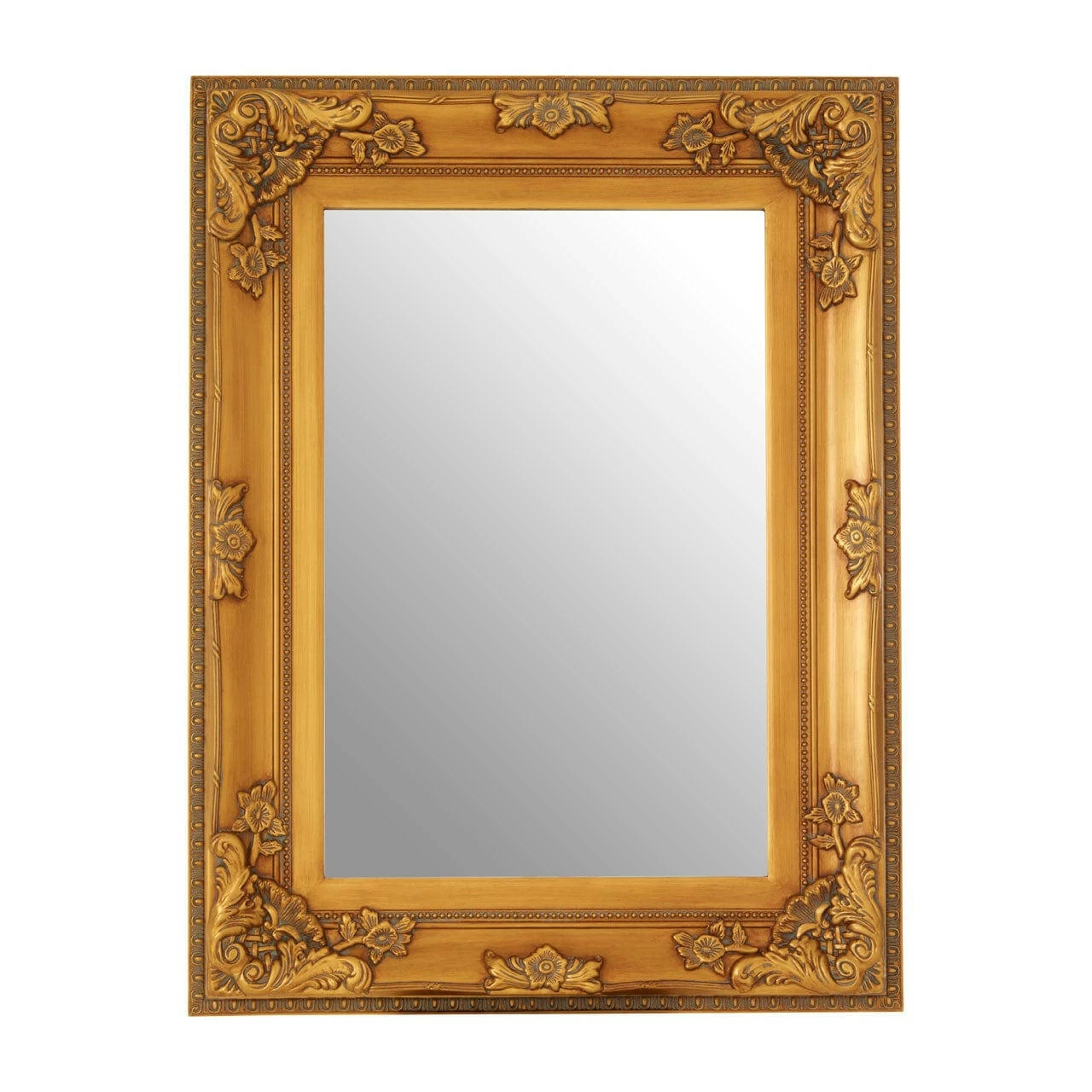 The frame of the Celeste wall mirror is made from real wood and has a rich gold finish. Display it landscape or portrait.