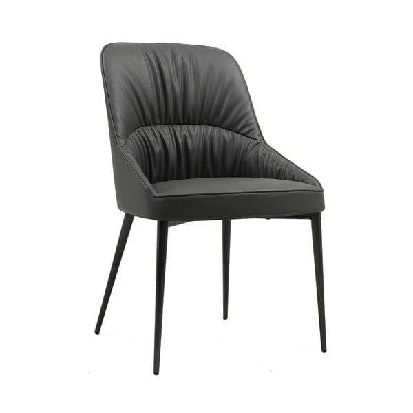 Meet the epitome of style and comfort, the “Frida I Dining Chair.” Upholstered in a sleek dark grey PU fabric, it exudes contemporary sophistication while ensuring a luxurious seating experience. The chair’s distinctive feature lies in its meticulously designed ruched detailing, adding a touch of texture and visual interest. Supported by black powder-coated metal legs, the chair strikes a perfect balance between modern aesthetics and sturdiness. The “Frida I Dining Chair” is not just furniture; it’s a statement piece that effortlessly combines form and function, enhancing your dining space with an air of elegance and tactile refinement.