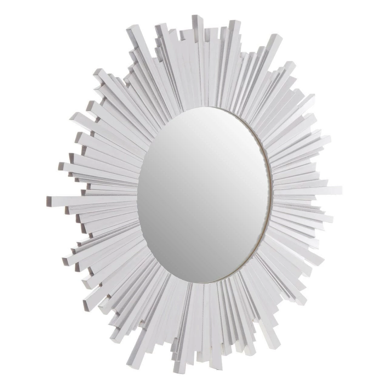 This stylish wall mirror adds a silver metallic accent to the living room or hallway. The frame is made up of rectangular shards of wood, cut and arranged at different lengths to create a jagged, serrated look. Its one metre circumference means that it makes a statement. Style it with luxurious boutique hotel-inspired furniture.