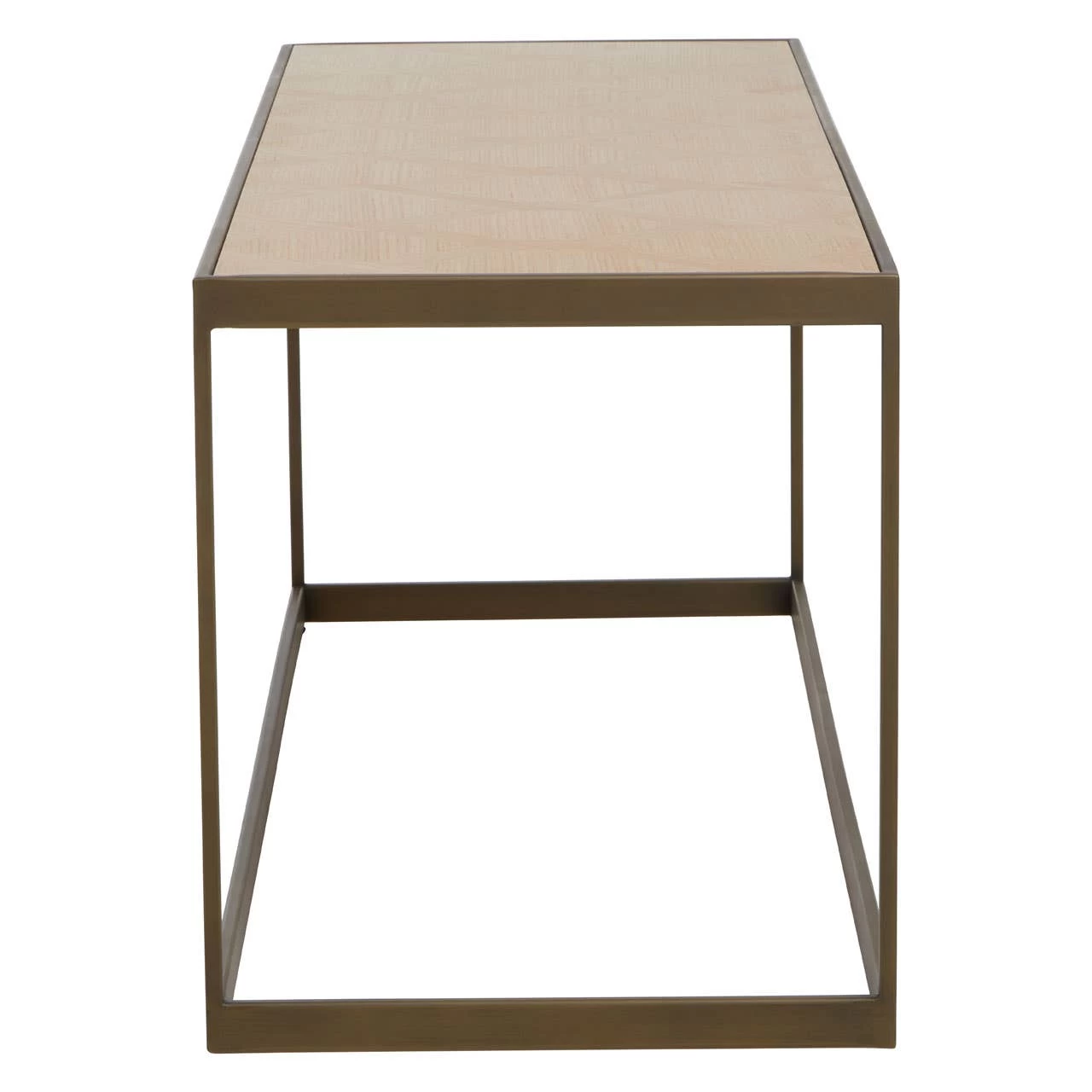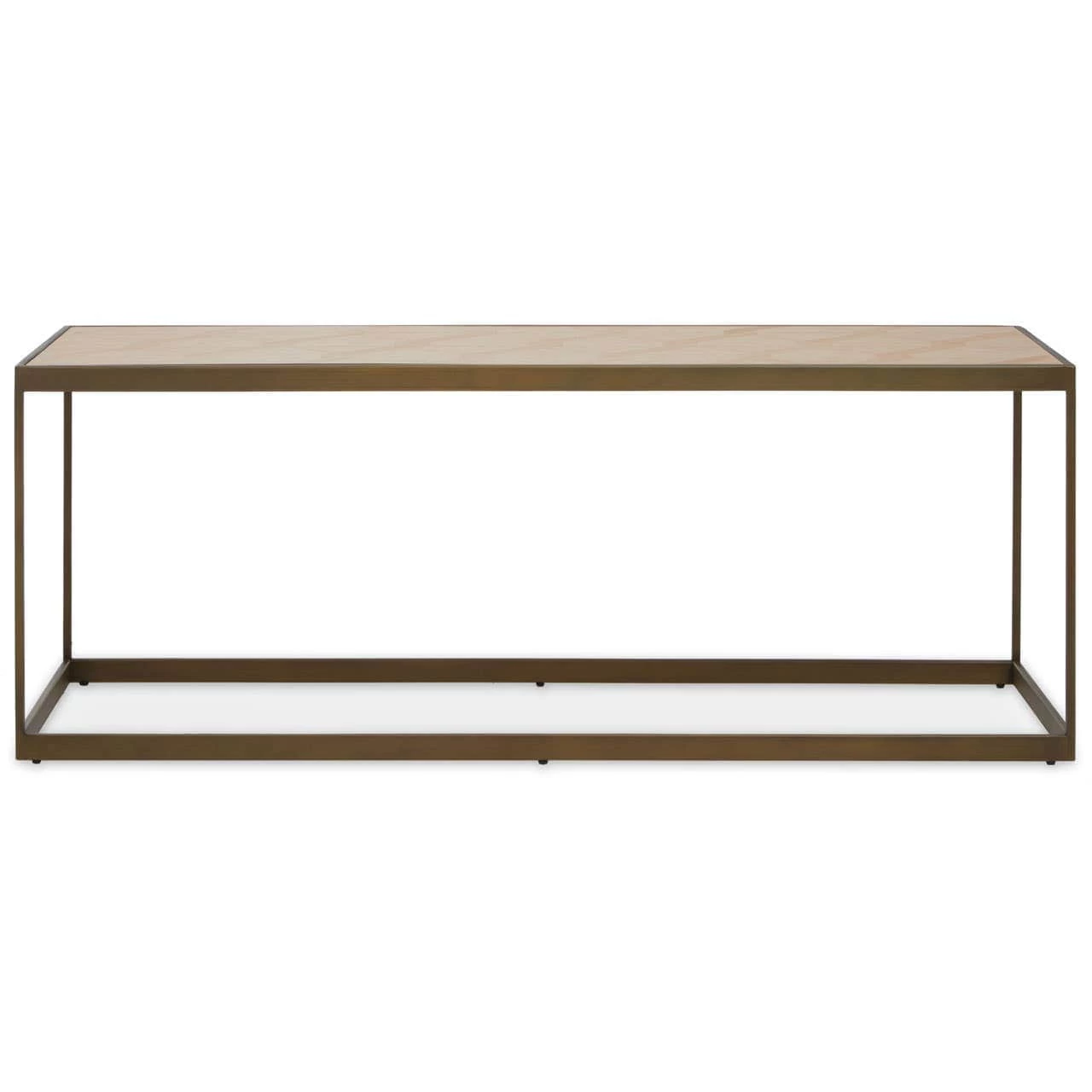 Boasting a refined composition of MDF and sturdy iron, this coffee table will add simplicity to the interior with its understated design. The rectangular top in the natural oak veneering effect is supported by a brass finish metal fixture which lends modernism to the living space.