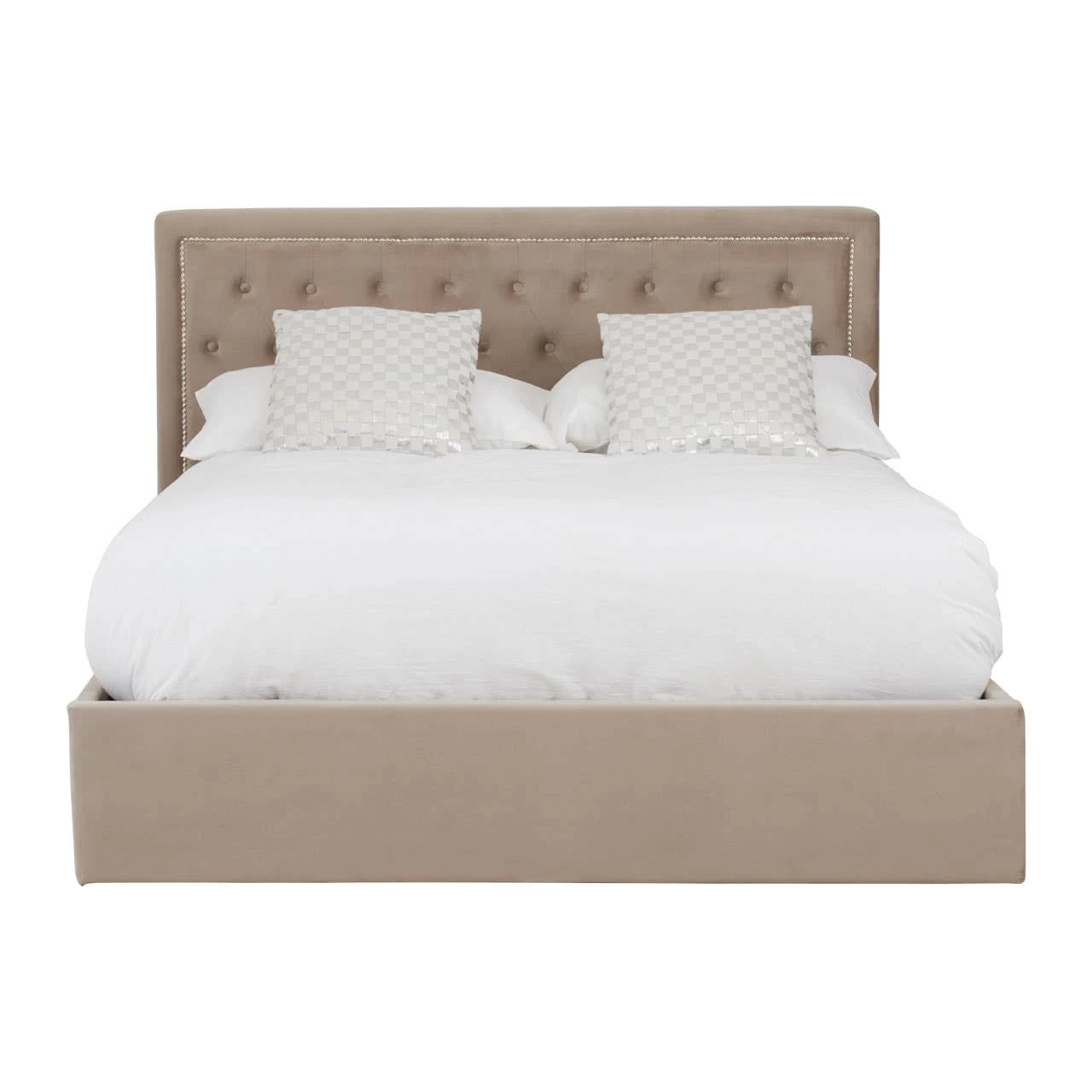 Featuring diamond quilting on the head rail, this ottoman bed has grace in its clean lined, elegant design. The plush velvet upholstery contributes to its sophisticated look and gives a luxurious tactile feel.