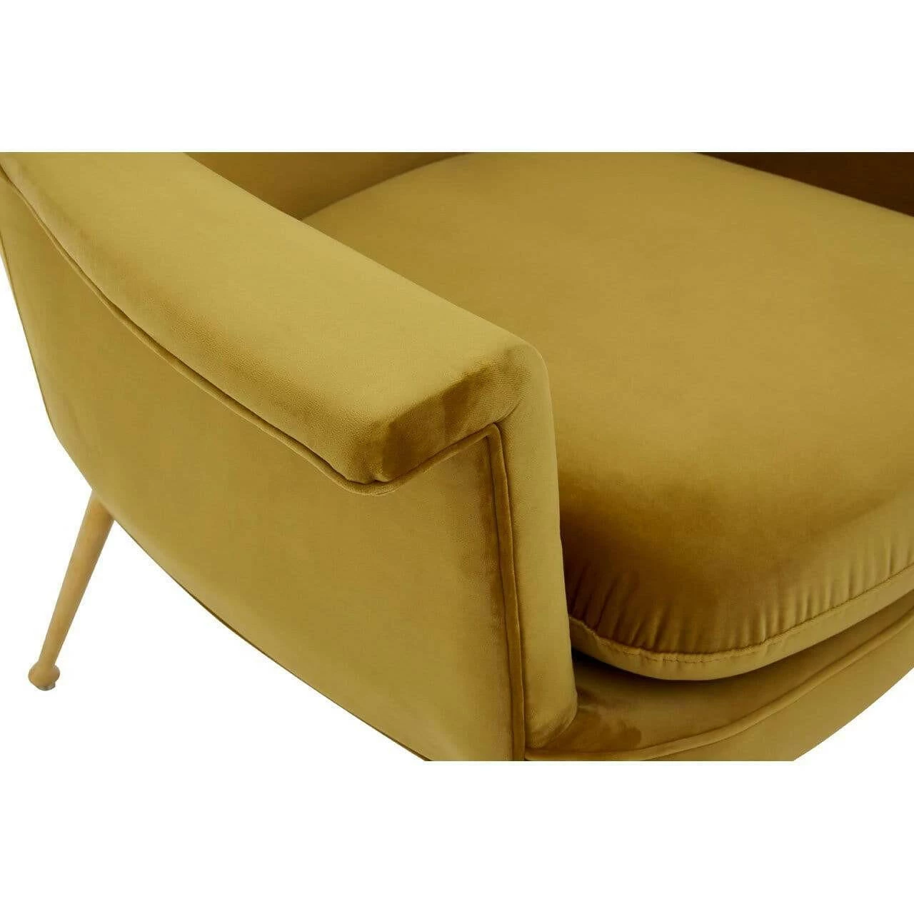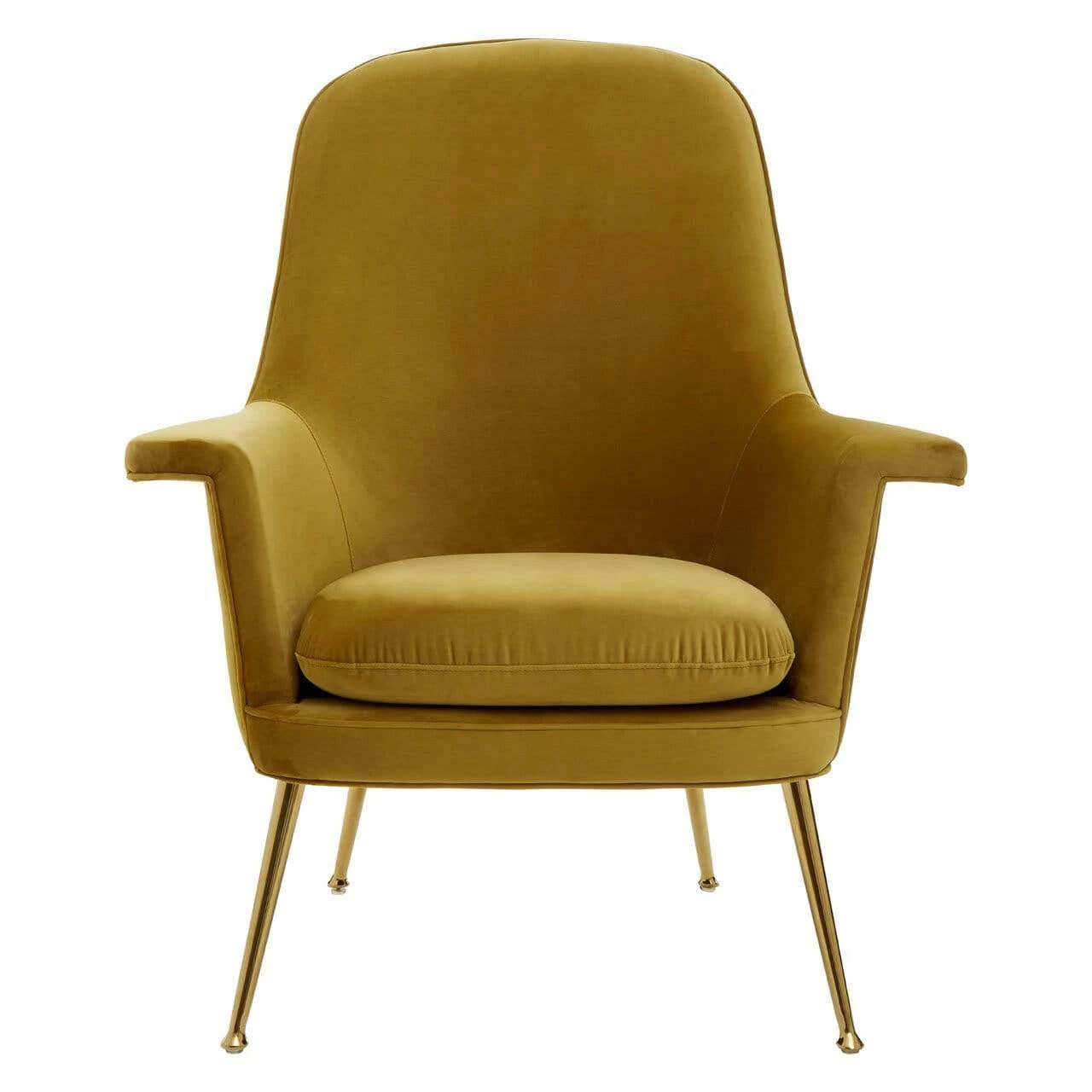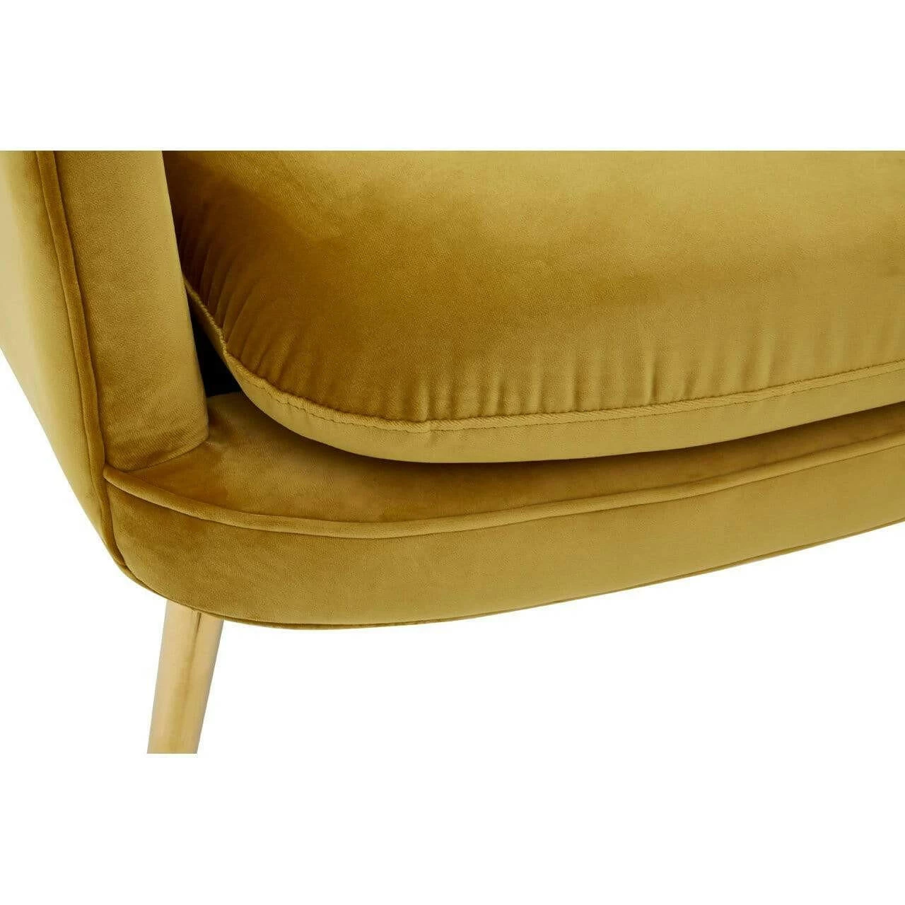 The Harli chair features sweeping design lines and a modest silhouette. It boasts soft chenille upholstery, coloured a bold pistachio to complement the gold finish stainless steel legs.