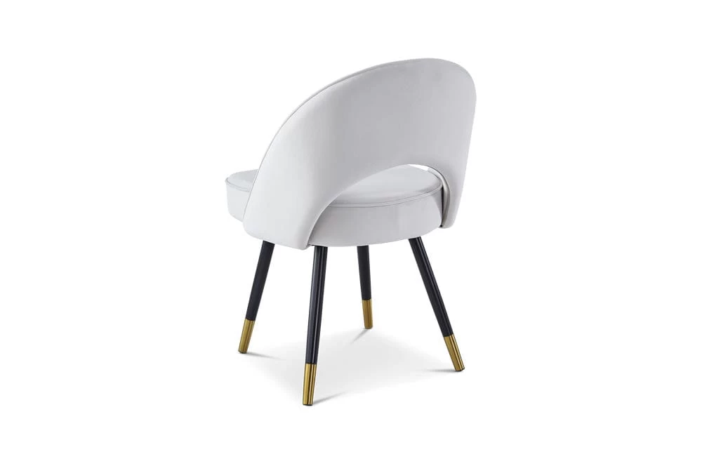 The Hoxton Dining Chair comes upholstered in a light grey matte velvet fabric and is finished with black legs with gold cups. The Hoxton Dining Chair can help you to achieve the perfect finish in any home or interior design project. Sold in sets of 2.
