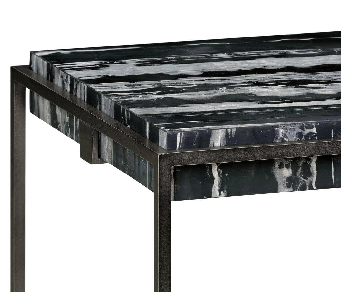 Square Iron End Table with a Black Marble Top. At Jonathan Charles, it’s all in the detail. Renowned for exquisite quality and specialist artistry, Jonathan Charles excel in designing fine furniture and high-quality antique reproductions inspired by the classics of the past. Jonathan Charles Furniture is made entirely by hand using age-old techniques employed by specially trained artisans. It’s this craft and attention to detail that breathes character and long-lasting quality into every furniture piece, successfully imitating antique heirlooms from the past.