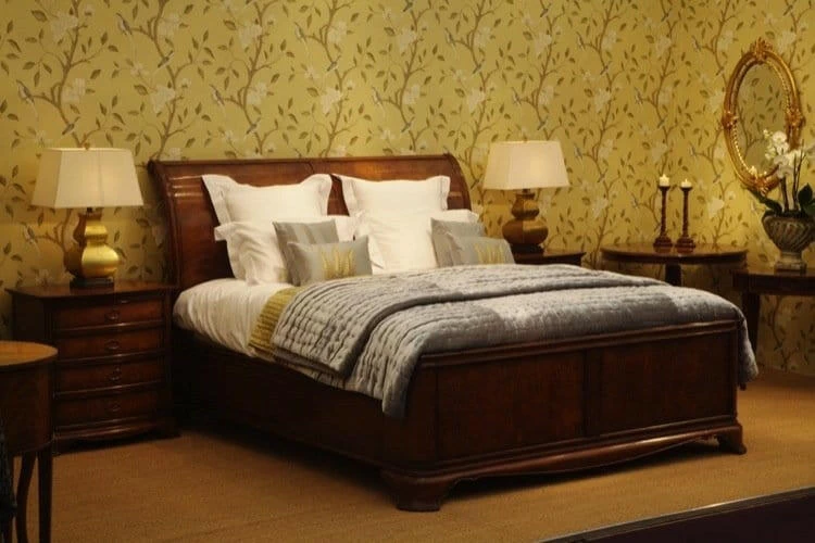 Jonathan Charles’ timeless sleigh bed frame is a beautiful addition for the classically decorated bedroom. Featuring a crotch walnut sleigh design inspired by traditional French furniture, this carved queen-size bed frame exudes elegance with its high sloping headboard with contrasting low foot end and kick-out bracket feet. Epitomising classical Georgian and regency style, Jonathan Charles’ Windsor collection features a selection of fine furniture made using rich wood finishes and timeless silhouettes. Each piece is an antique replica masterpiece, displaying simply exquisite attention to detail that exudes the Jonathan Charles trademark style. At Jonathan Charles, it’s all in the detail. International experts in designing and manufacturing fine furniture, Jonathan Charles craft beautiful antique reproductions using age-old techniques employed by specially trained artisans, breathing character and long-lasting quality into their furniture and accessories. ~ Please note: mattress and pillows not included.