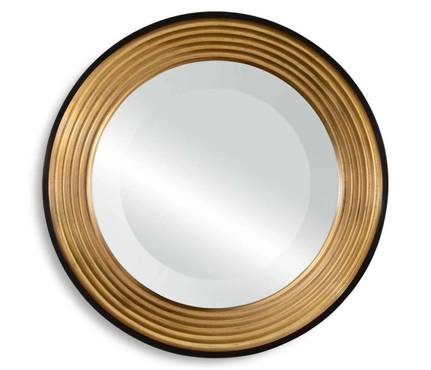 Circular black lacquered and gilt mirror with bevelled glass. The recessed centre creating a sense of depth and a contemporary feel. Inspired by Modernist designs of the 1930’s.