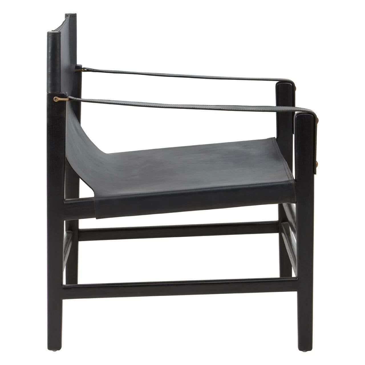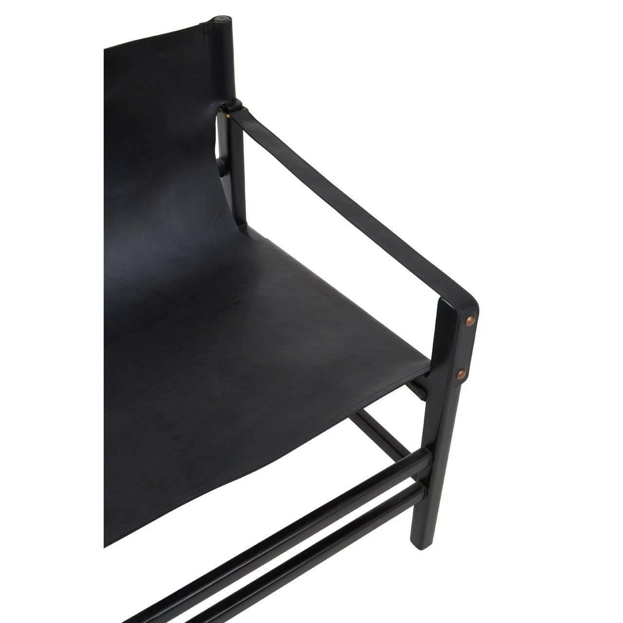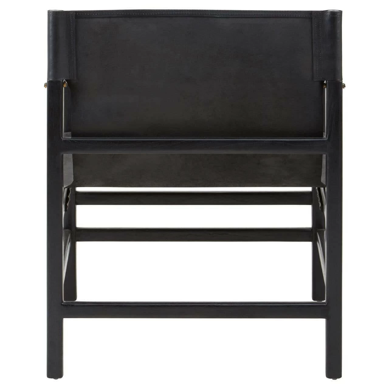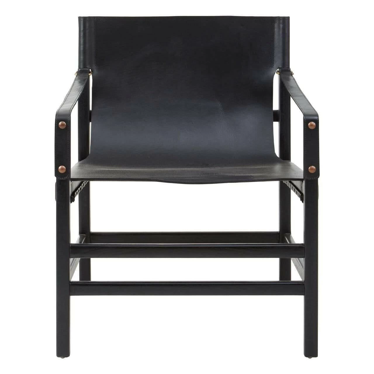 A design triumph, and equally attractive from front to back, this armchair is a true masterpiece from any angle. Vintage inspired sloped armrests, in a dark balck finish are complemented by the black leather, substantiating this accent chairs undeniable good-looks.