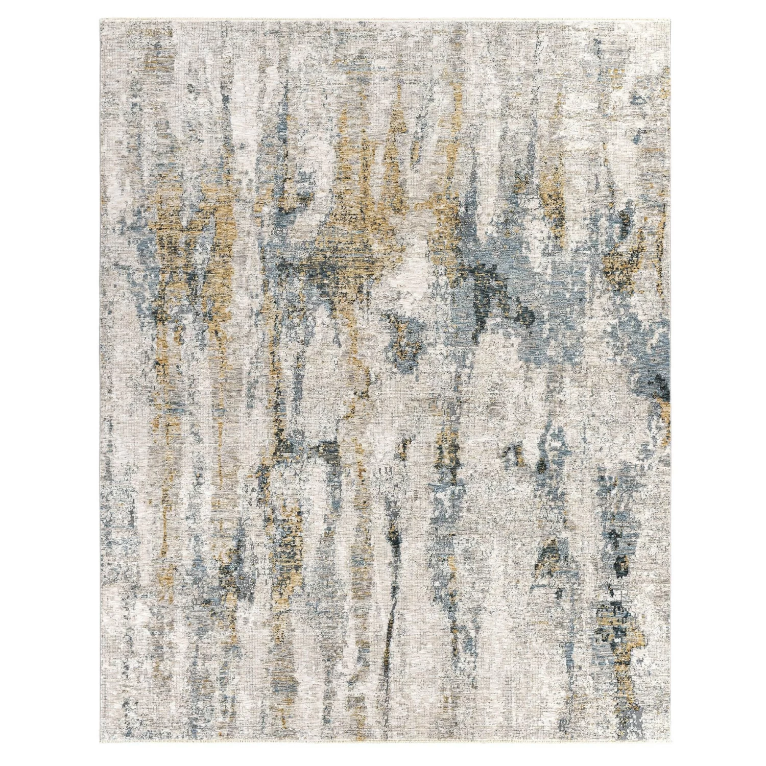This Machine Woven Rug Features An Abstract Design In Tones Of Light Beige, Cream, Denim Blue, And Gray, Constructed From Lustrous Polyester.Light Beige, Cream, Denim Blue, And Gray