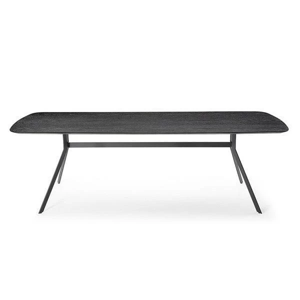 The Lapiz Dining Table presents an exquisite blend of understated elegance and unique design. Its grey wash oak veneer top exudes a refined charm, showcasing the natural beauty of the wood while providing a smooth and inviting surface for dining. The black powder-coated legs offer a bold contrast, adding a modern touch to the table’s aesthetic. The table’s standout feature lies in its distinctive base, which captures attention with its one-of-a-kind design. This understated yet captivating table effortlessly marries form and function, making it a focal point that brings sophistication and character to any dining area, while encouraging shared moments around its beautifully crafted surface.