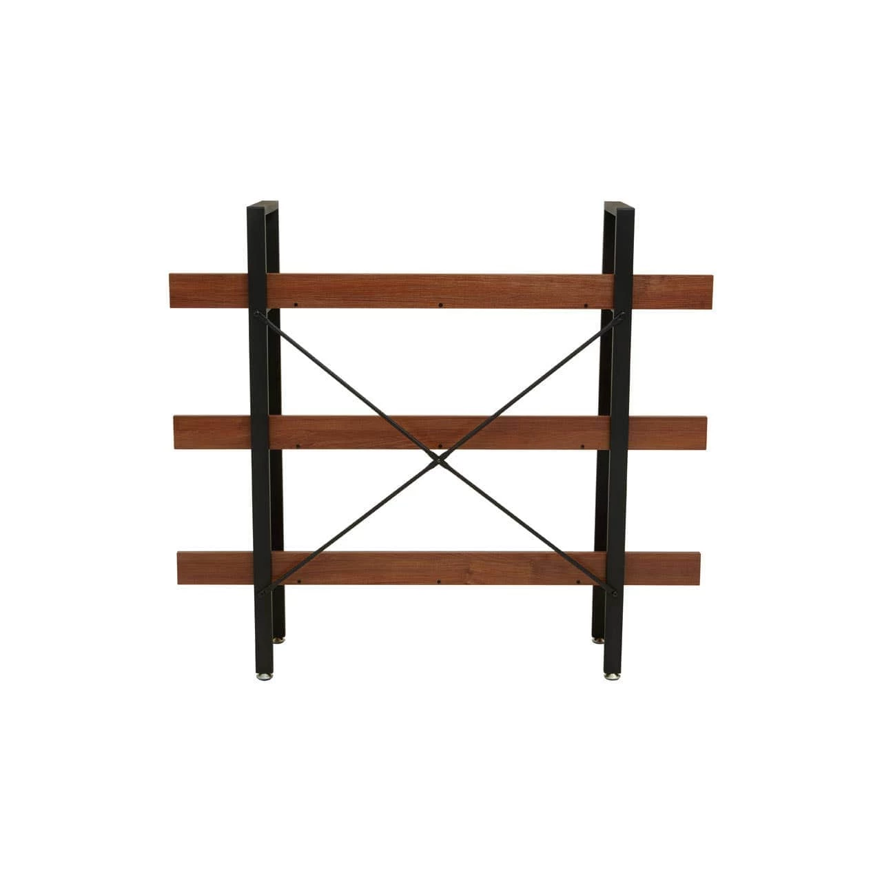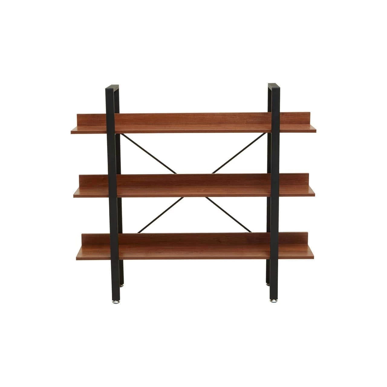 This 3 tiered shelf is built with a beech grain laminated chipboard supported with a metal frame finished with black powder coating. This versatile unit provides ample space for books and decoration.