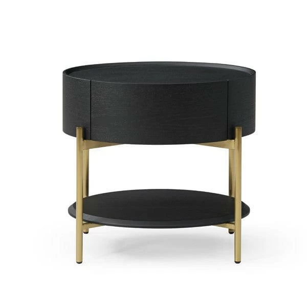 Elevate your bedroom ambiance with the enduring allure of the Livello Bedside Table—an embodiment of sophistication that promises to grace any sleeping space with timeless beauty. Meticulously designed, it effortlessly fuses functionality with aesthetics, creating a harmonious piece that transcends style boundaries. The black oak top drawer and lower shelf exude a sense of understated elegance, complemented by the lustrous stainless steel legs that shimmer in a luxurious gold finish. The table’s gracefully curved design is not only visually pleasing but also accentuates its lamp table, providing a classic touch heightened by the meticulous detailing of the table top lip. From contemporary to traditional interiors, the Livello Bedside Table seamlessly integrates, becoming a statement of refined taste and understated opulence. Witness the convergence of artistry and utility as this timeless piece effortlessly graces your bedroom, a testament to impeccable craftsmanship and a stylish addition that speaks volumes about your discerning eye for design.