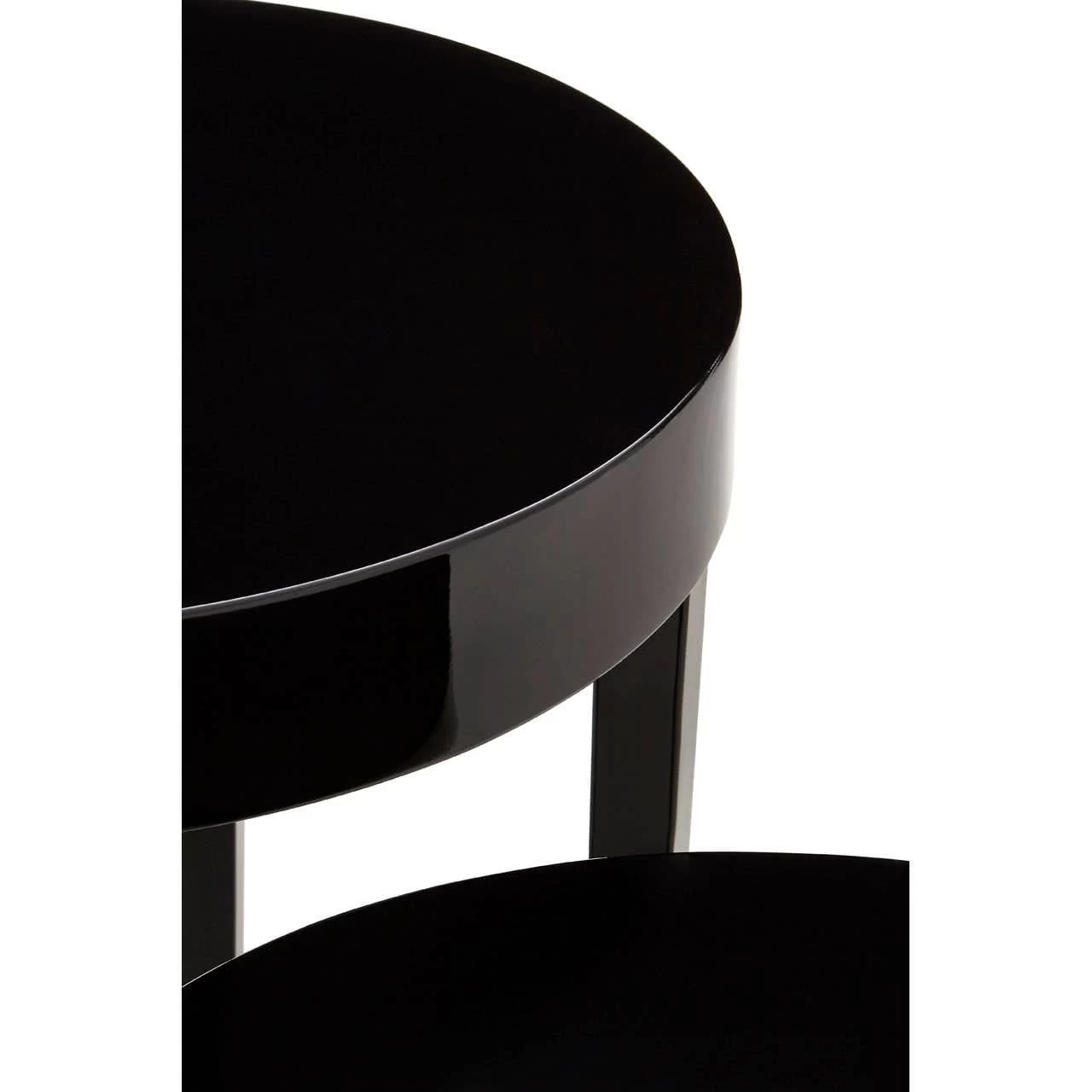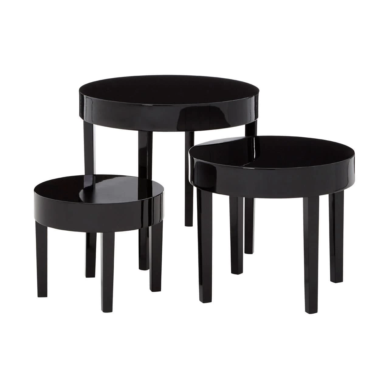 Each table has a chunky round top which is supported by slim squared legs. The legs are made from renewable pine wood, finished in high gloss black to match the tabletops. The small and medium versions are designed to nest neatly under the large. Display them with boutique hotel furniture for a luxury look in the living room.