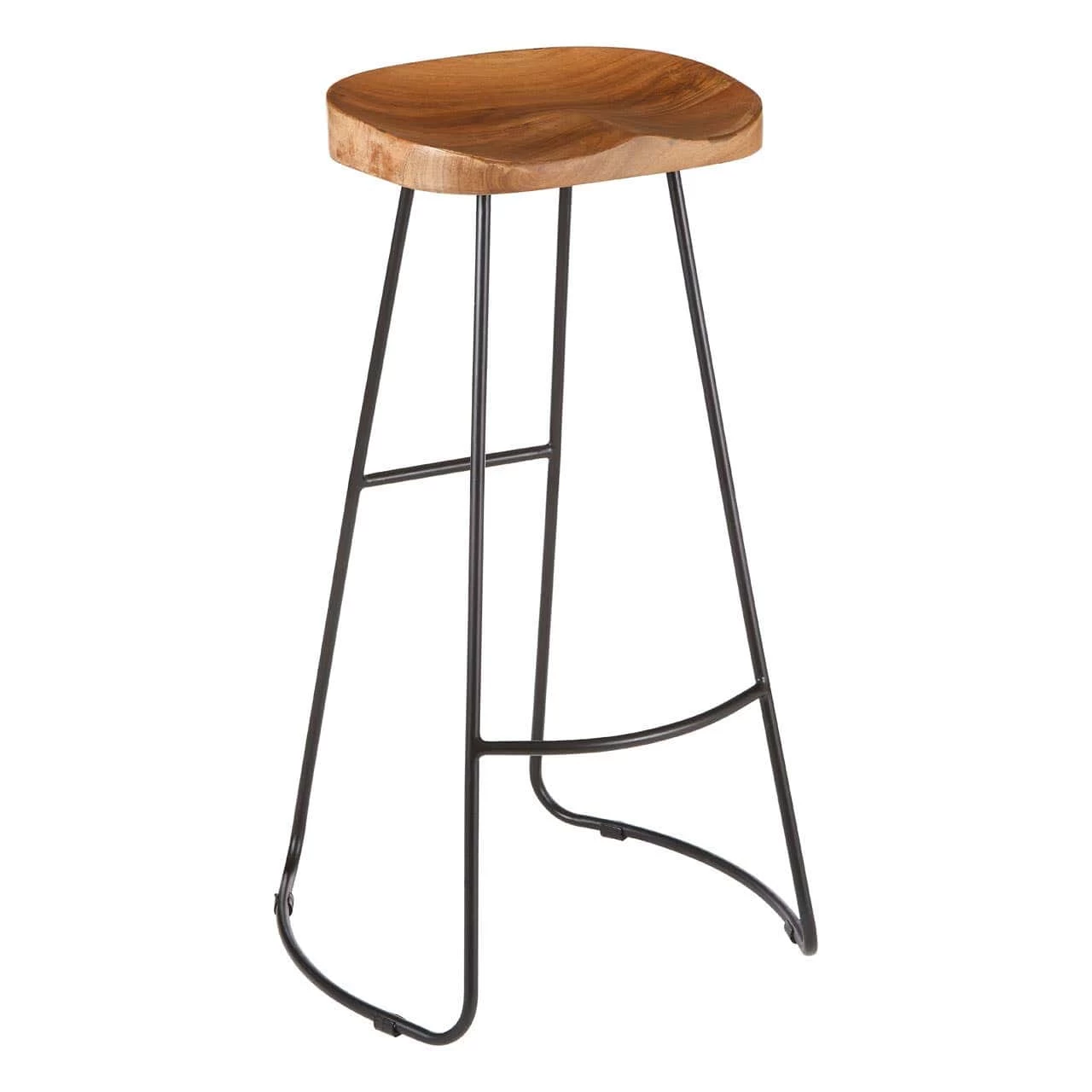 The stool’s simplistic seat is created from strong acacia wood and has been carved and contoured for a comfortable seating experience. The seat boasts distinctive grain patterns that accentuate its curved shape.