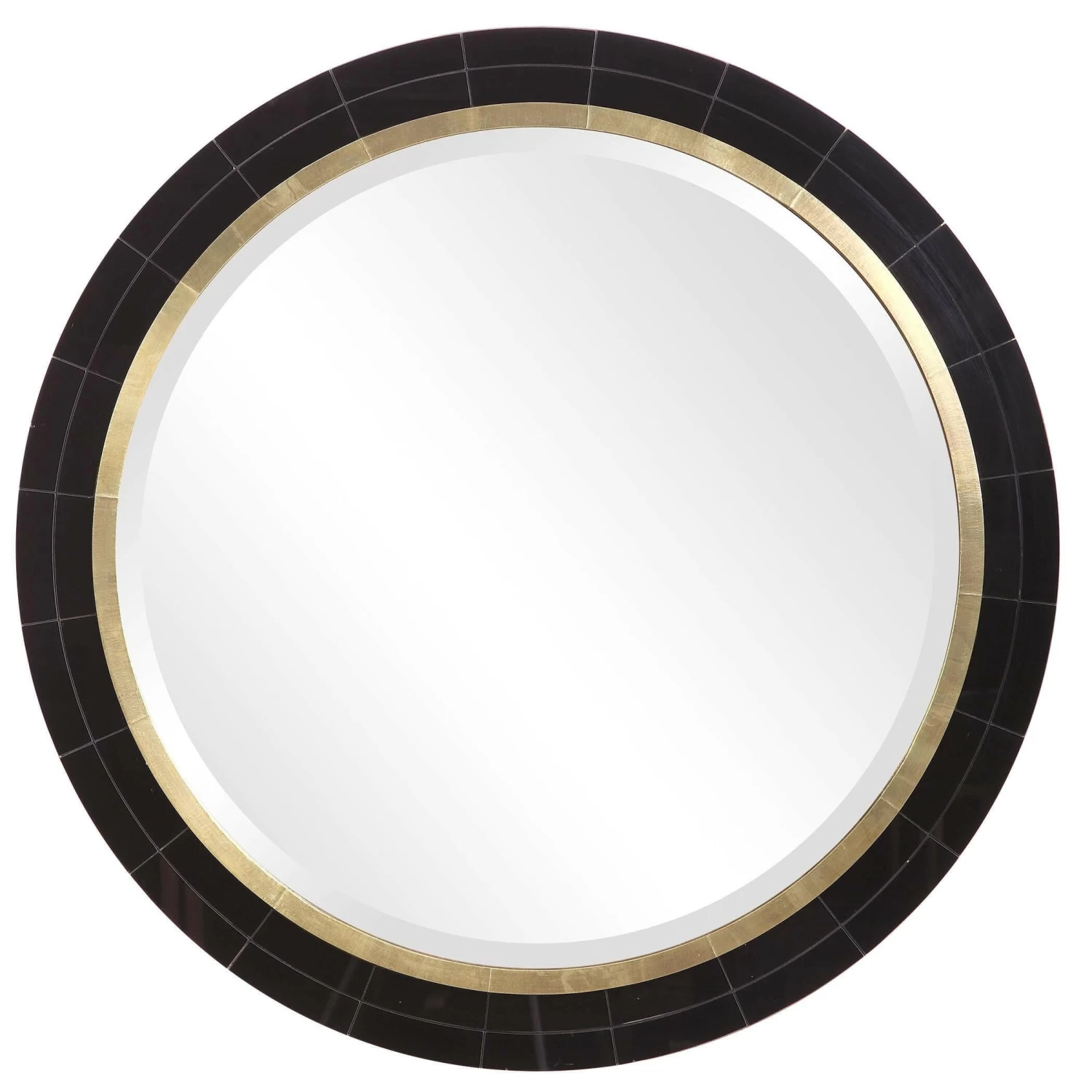 This Round Mirror Features A Black Mirrored Tile Frame And Is Clad In An Antique Brass Finished Metal Sheeting. The Piece Has A Generous 1 1/4″ Bevel. Uttermost Uttermost is a family owned and managed US interior brand with an extensive range of furniture , lighting & accessories with an upscale luxury aesthetic. We have some of the of the most talented designers in the industry creating fresh and unique complimentary collections to beautify your home. While we are focused on bringing you the most fashion-forward products in the industry, we know that good design means nothing without quality manufacturing. You can be certain that no shortcuts are taken in manufacturing to make sure our products exceed expectations.