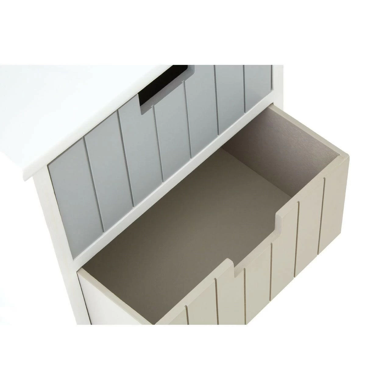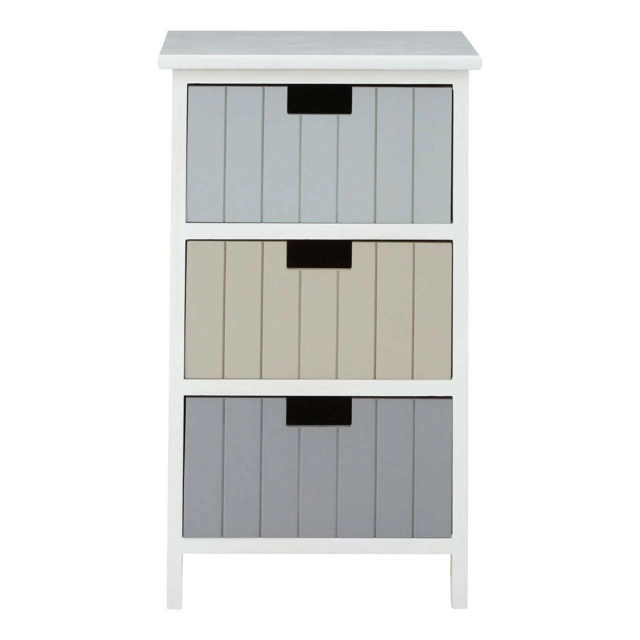 This coastal inspired chest offers superb storage space. The three drawers are made from natural paulownia wood, renowned for being lightweight yet robust. Displaying a range of pastel hues, each deep drawer features a panelled front and cut out handle. The cabinet has a crisp white finish, its legs benefiting from floor protecting feet.