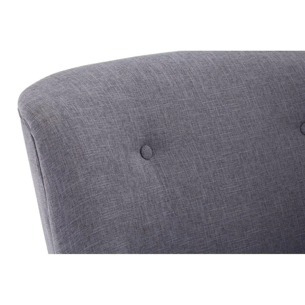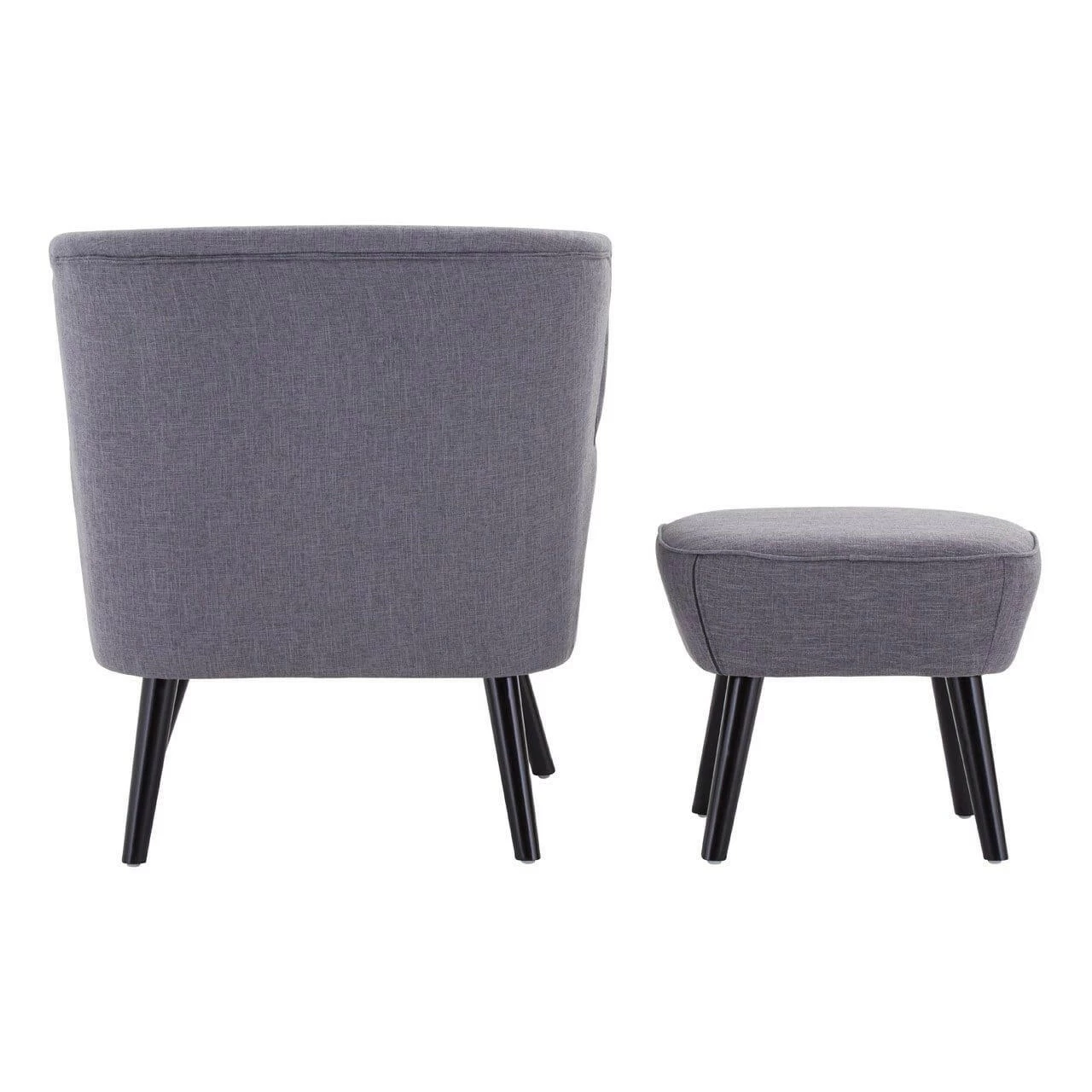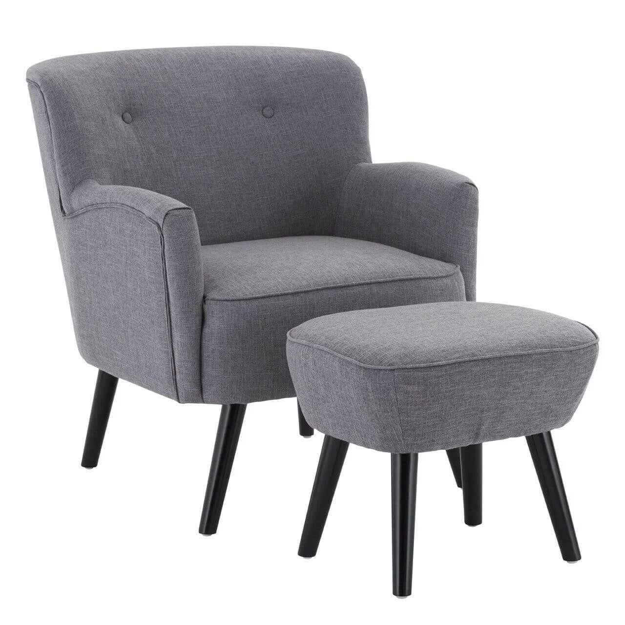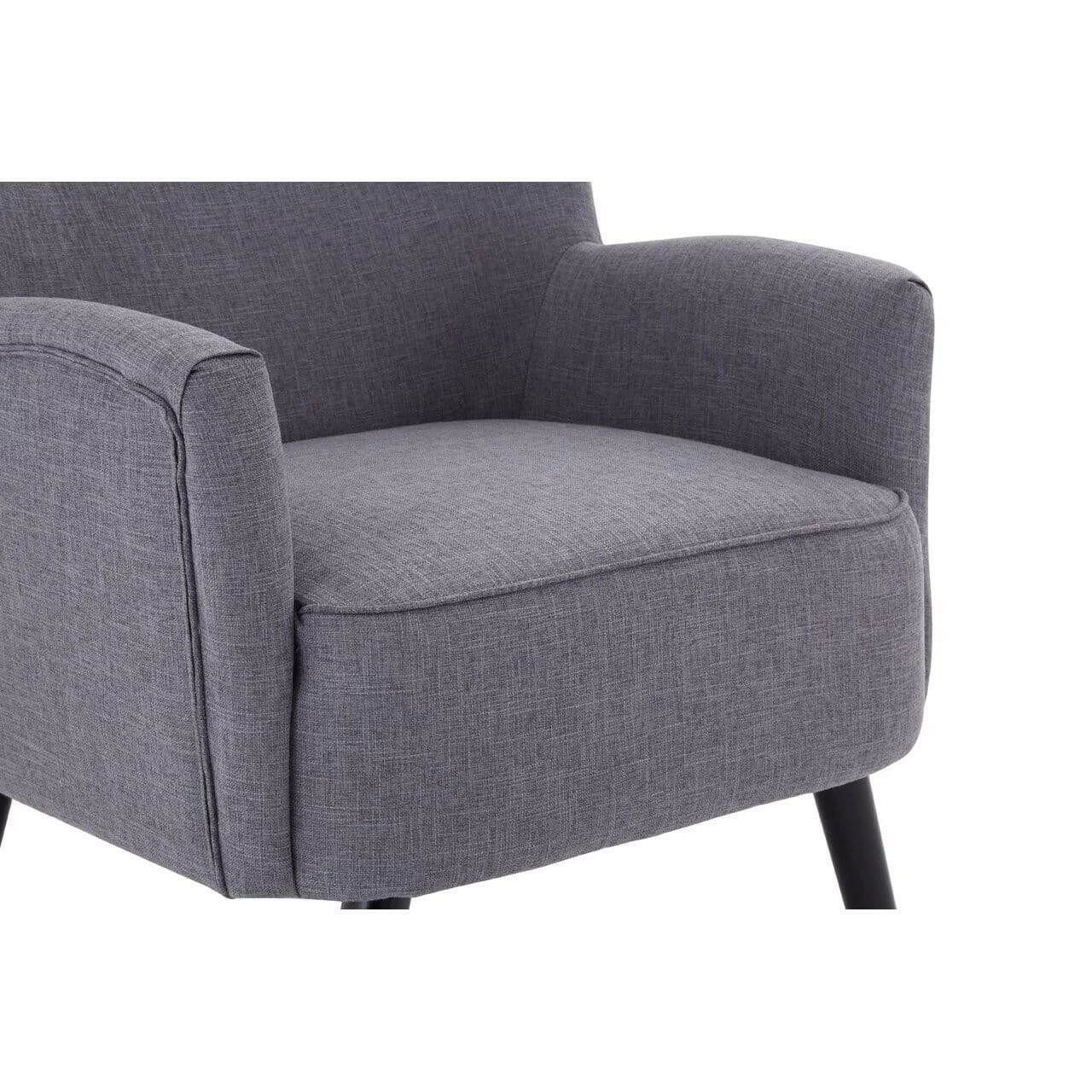 This armchair’s light grey tones make it great for styling with other scandi style furnishings. Upholstered in soft grey fabric, its low profile and comfortable backrest encourages the sitter to sink back. Its matching footrest is great for resting tired feet on. Slender black legs made from hevea wood angle gently from the base of the chair and ottoman.