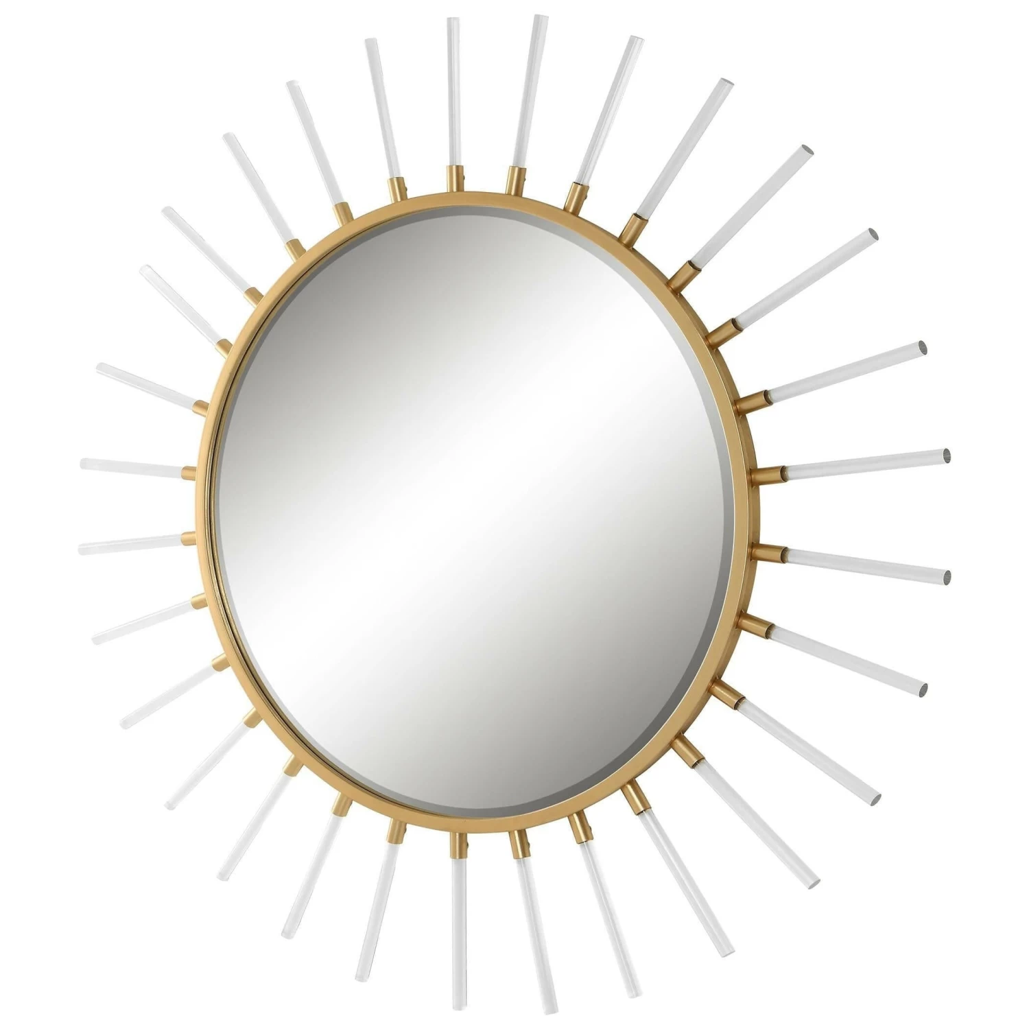 This Stunning Round Is Sure To Make A Statement In Any Space. The Frame Is Crafted From Forged Iron Finished In A Metallic Gold Leaf, Accented With Clear Acrylic Rods. Mirror Features A Generous 1 1/4″ Bevel. Uttermost Uttermost is a family owned and managed US interior brand with an extensive range of furniture , lighting & accessories with an upscale luxury aesthetic. We have some of the of the most talented designers in the industry creating fresh and unique complimentary collections to beautify your home. While we are focused on bringing you the most fashion-forward products in the industry, we know that good design means nothing without quality manufacturing. You can be certain that no shortcuts are taken in manufacturing to make sure our products exceed expectations.