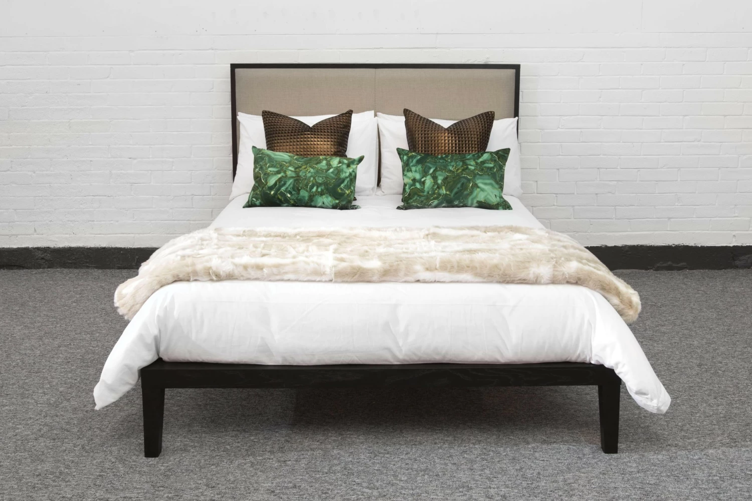 MDF and 0.6mm veneer with centre Support legs and upholstered panelled headboard