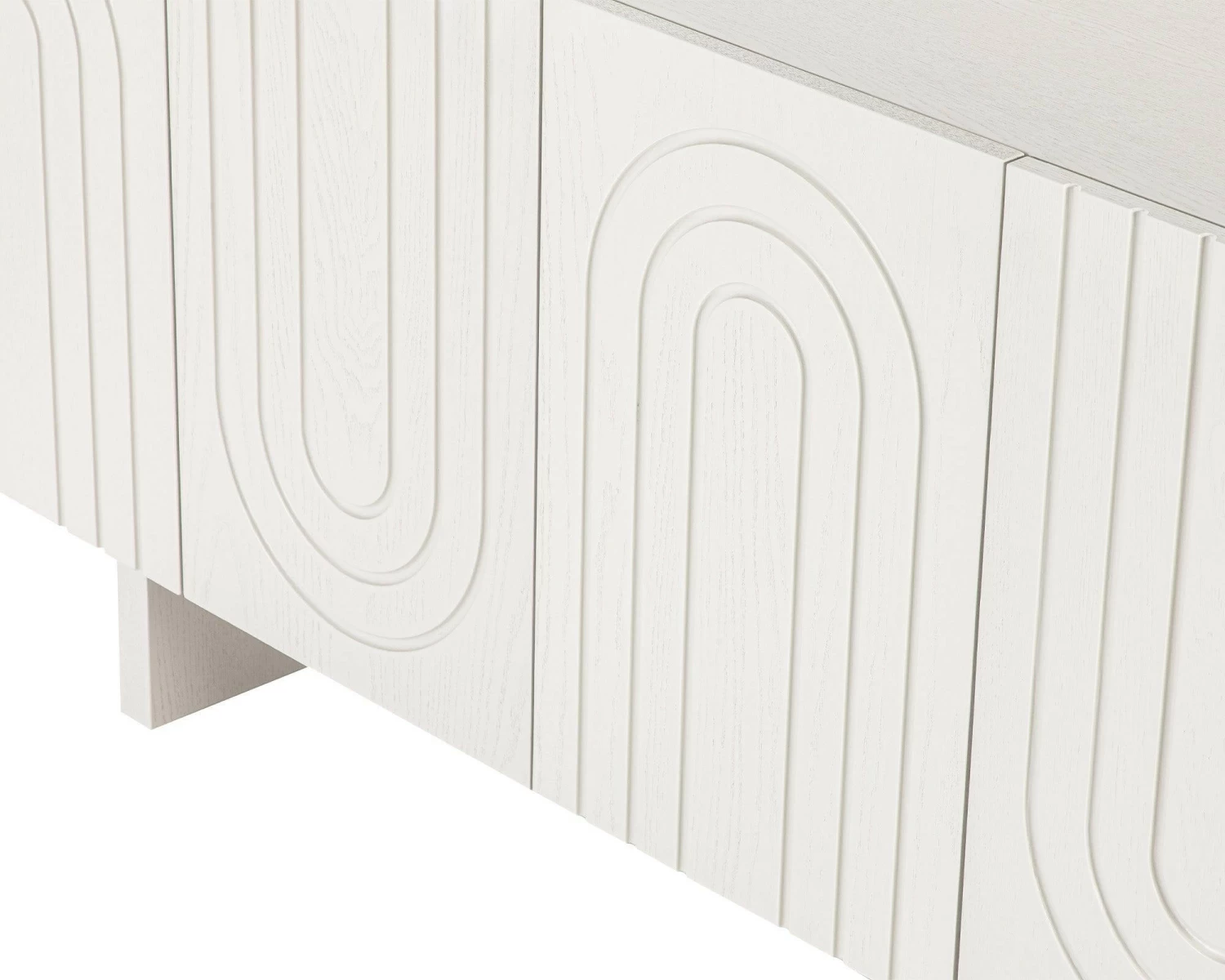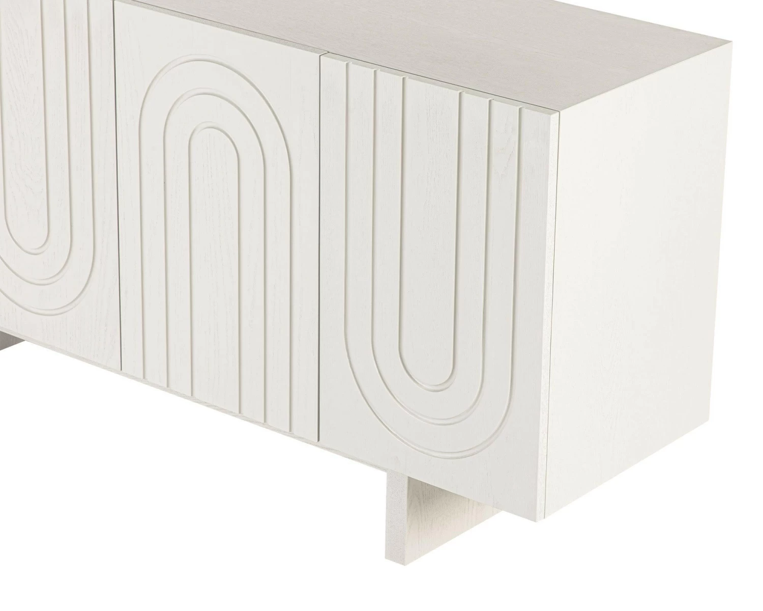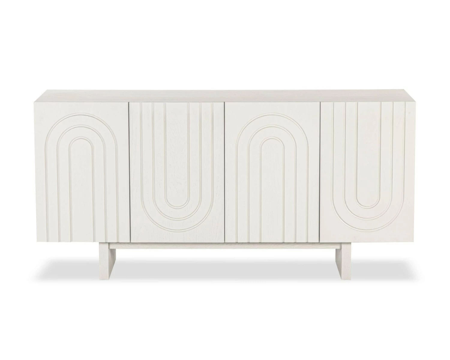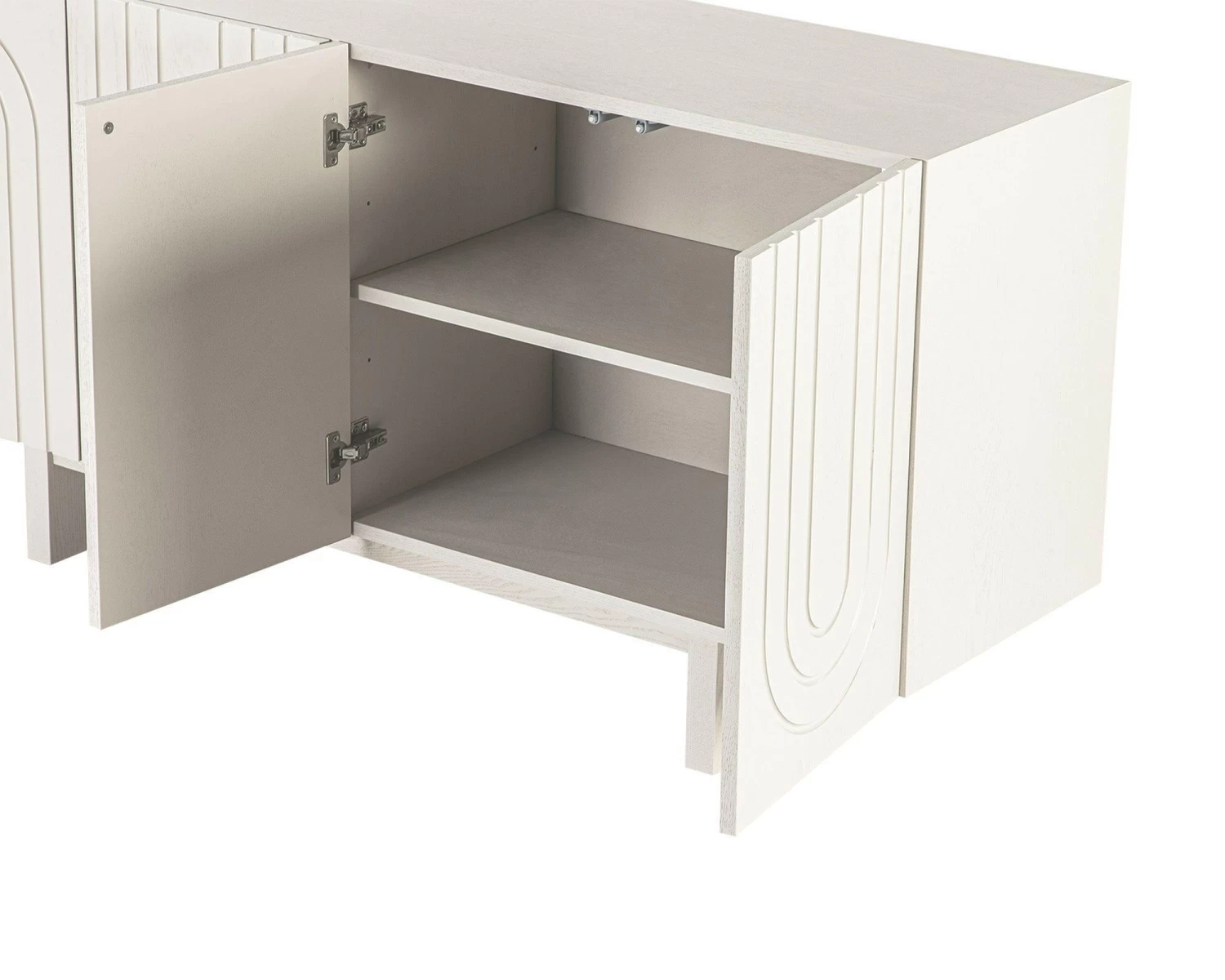 The neutral palette of the soft cream colour on the Origin sideboard is perfect for the pared back style that many has come to love. If quiet elegance is what you’re after, then this sideboard is for you. The machined rainbow-like pattern that has been repeated throughout the four doors creates a slight playfulness to this piece. Features: Ash Wood Veneer lacquered in natural cream Two compartments with four doors for ample storage