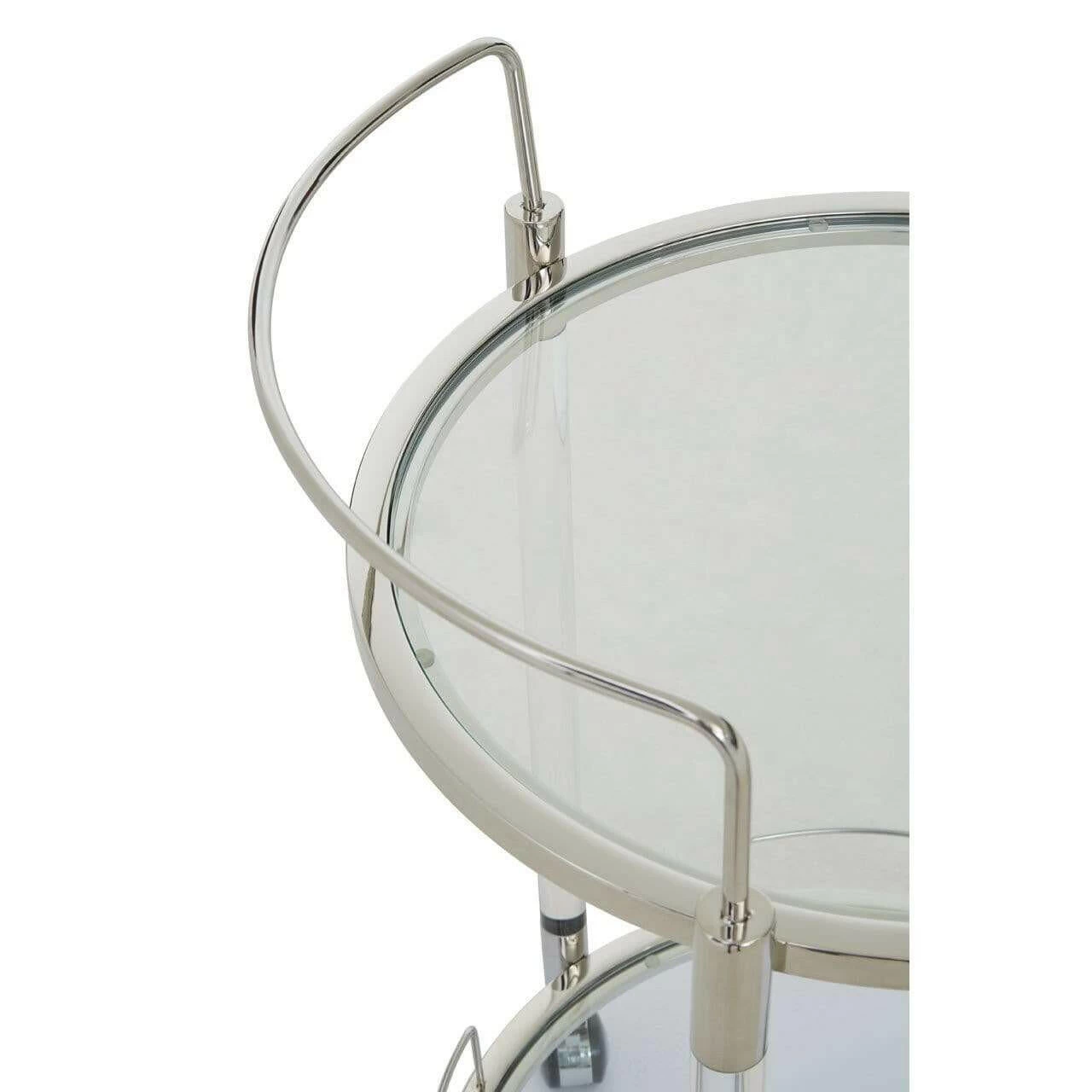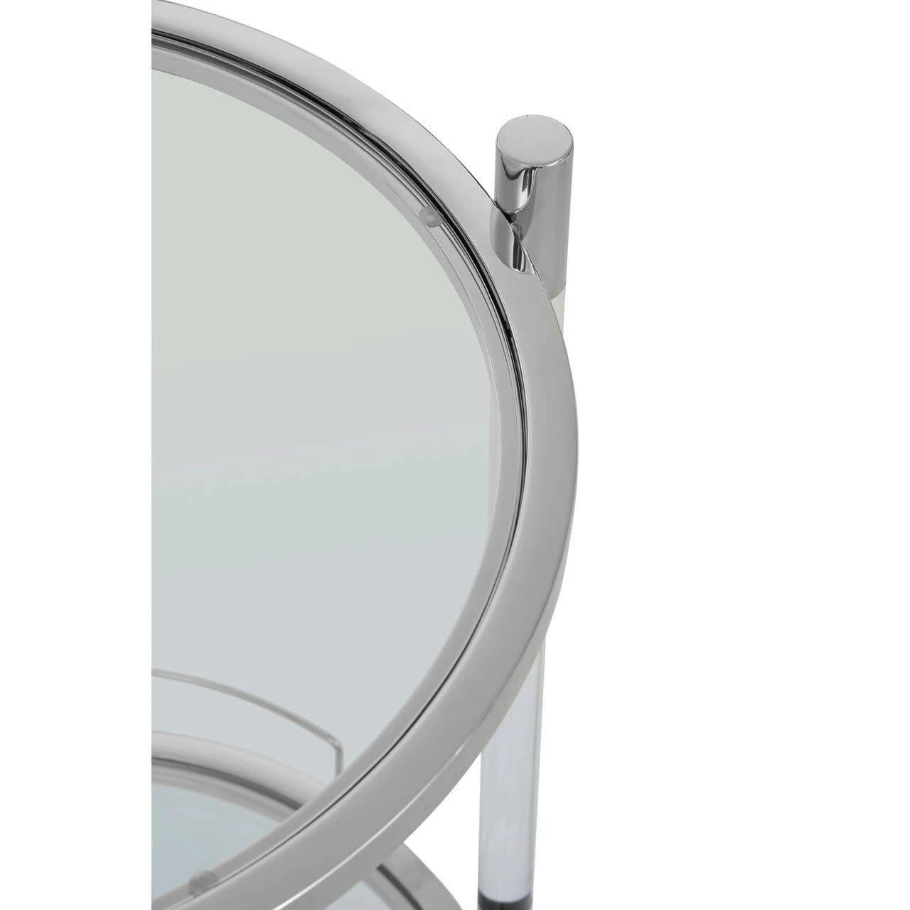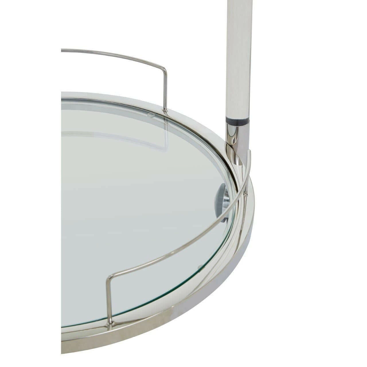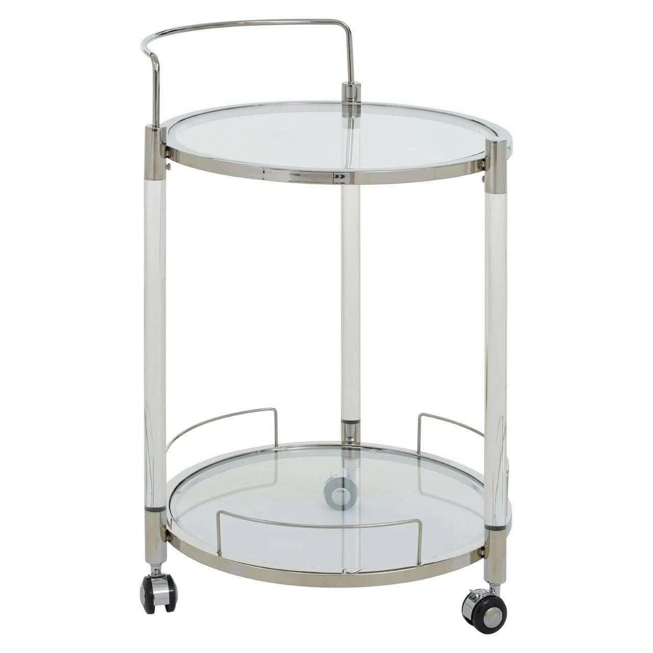 Crafted of acrylic and stainless steel with a lustrous silver chrome finish, this practical and stylish trolley on castors has a mirrored glass lower shelf and tray top. This trolley is ideal for serving cocktails, afternoon tea and more.