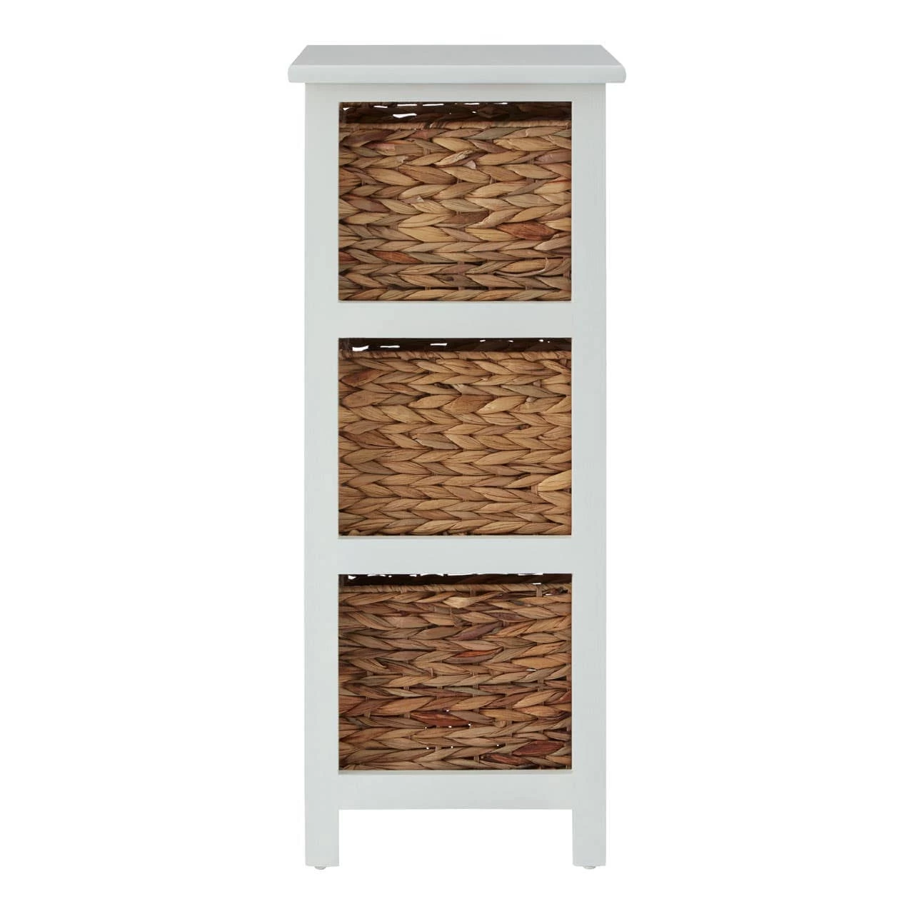 The three baskets are made from eco-friendly hyacinth. Each one has a cut-out handle at the top, and boasts a distinctive chevron weave. The unit is made from natural paulownia wood and is notable for its clean and simple design lines. Pair it with the Padstow six basket unit for coordinated storage space.