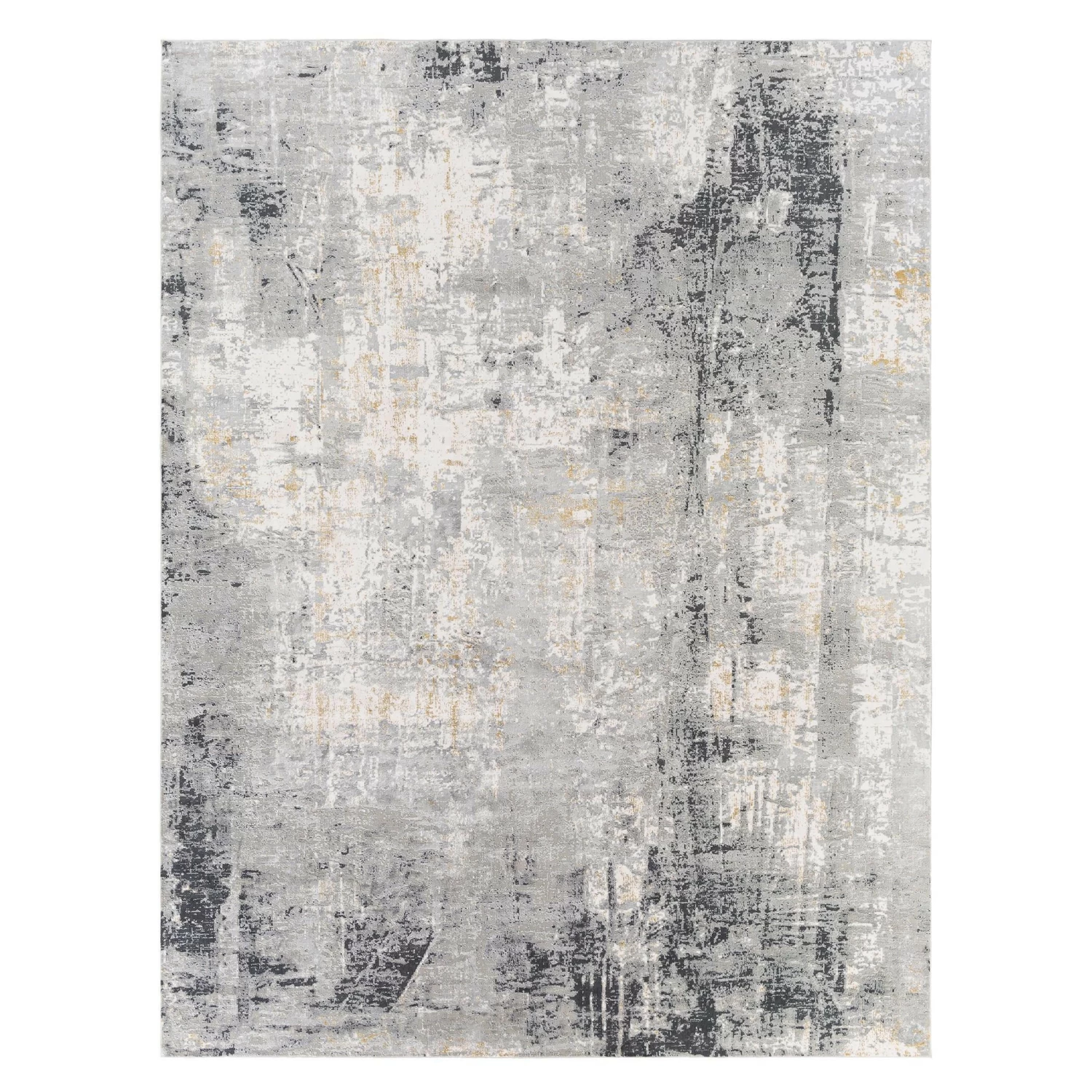 This Machine Woven Rug Features An Abstract Design In Tones Of Light Gray, Off-white, Charcoal And Subtle Tones Of Mustard, Constructed From A Mix Of Lustrous Viscose And Polyester.Light Gray, Mustard, Off-White, Charcoal, Gray