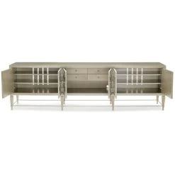 An elegant nesting table when paired with Perfect Together-Tall, this console makes a casual luxe statement in a visually tactile, monochromatic palette. Its streamlined design features a Brushed Antique Brass-finished frame with tapered legs, capped in Deep Bronze metal ferrules for added distinction. Topped in a lustrous acrylic and resin, hand-stamped with a cross-hatch pattern in hues of cream and alabaster. Style as a sofa table or a console in halls and entryways. Top in Albino. Metal frame in Brushed Antique Brass. Metal ferrules in Deep Bronze. Pairs with CLA-021-441.