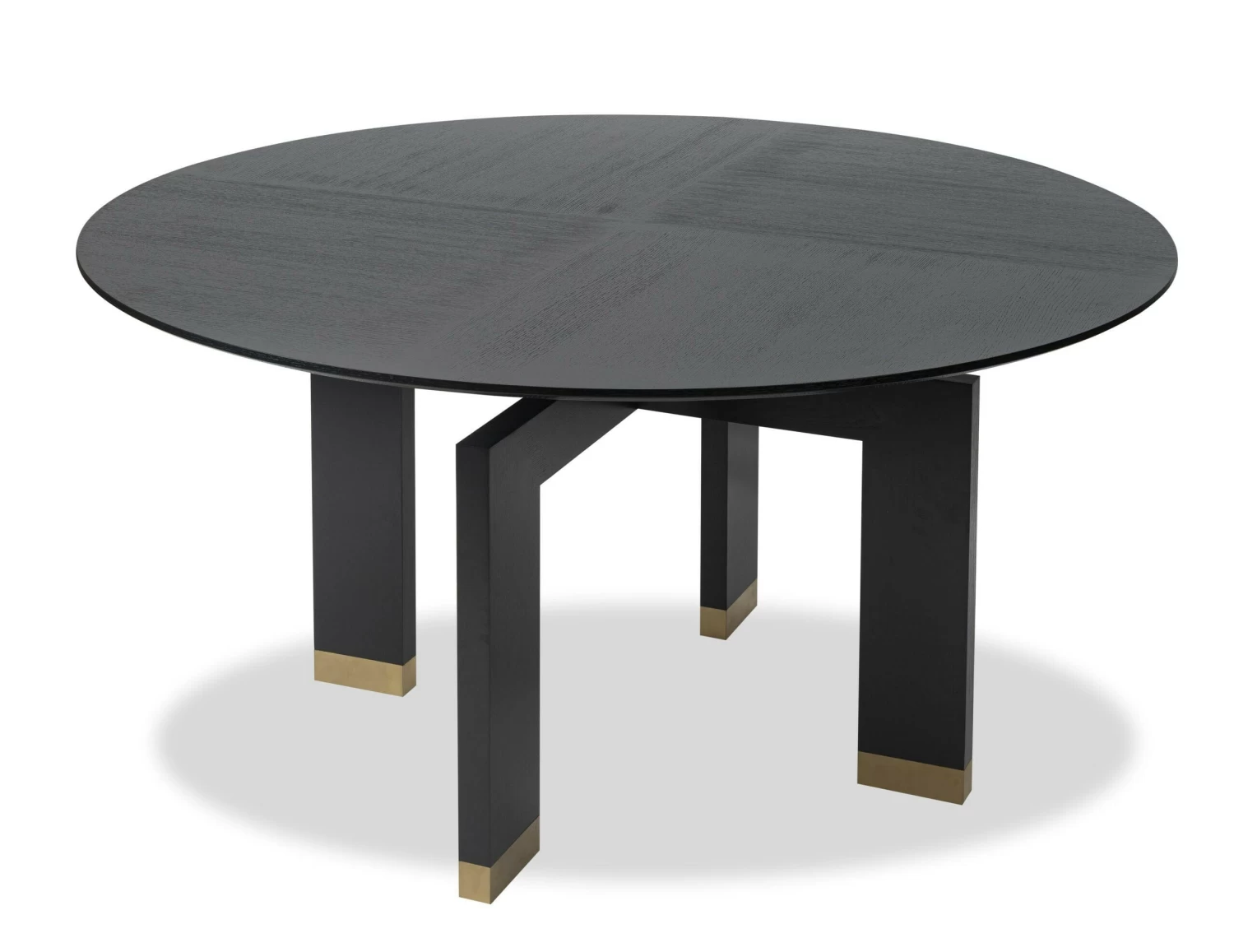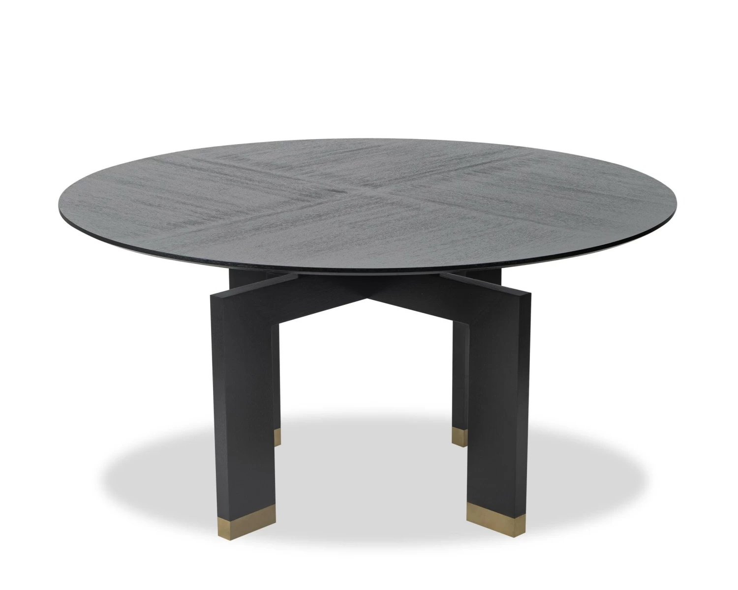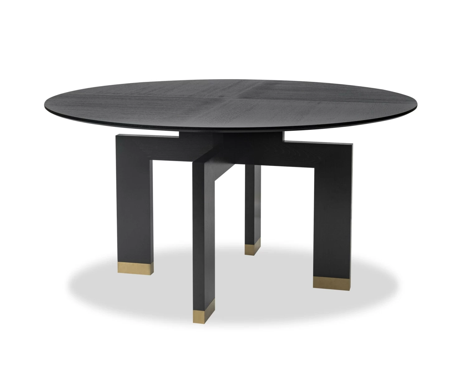 Wenge Finished Oak Veneers, Polished Brass Finished Cappings Dine in total elegance around the neat curves of the Ponte dining table. An expression of artistry as well as a beautiful piece for your dining room. The smooth circular top is elevated by a sturdy support. Ponte creates a convivial setting perfect for everyday dining or more formal soirees. A square base allows this table to sit proudly with almost regal anticipation. Watch as it adds a true sense of ambience to your space. You are sure to make memories around the sophisticated aura of this table.