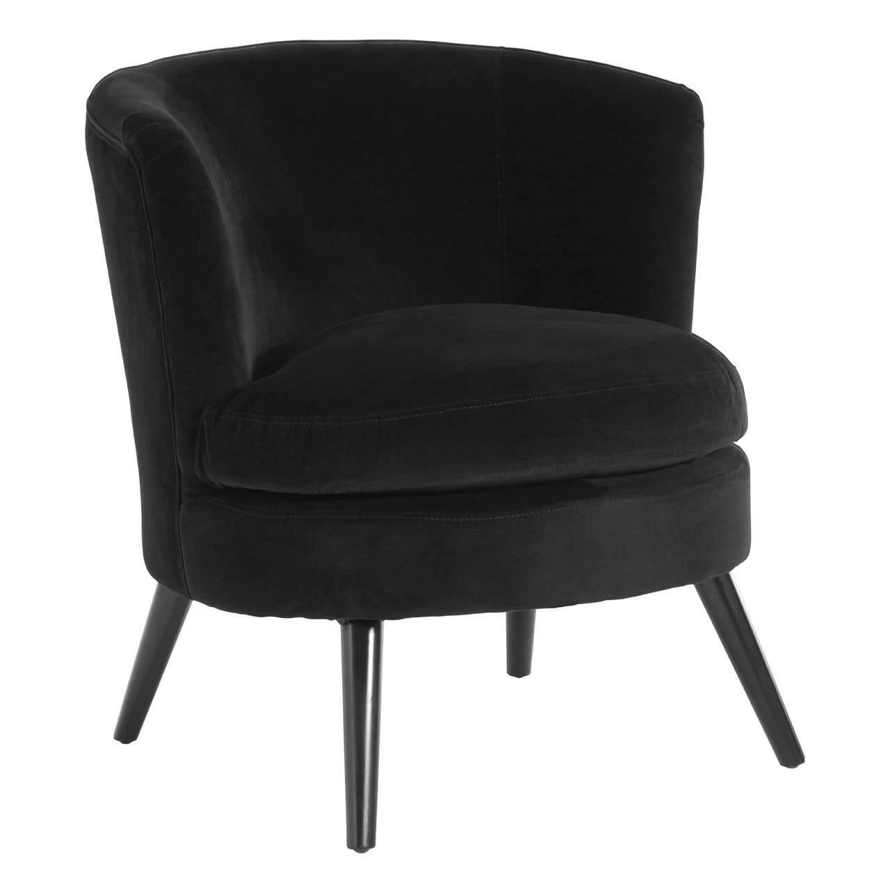 Beautiful and durable, this armchair’s black cotton upholstery looks great and is soft to the touch. Its plump cushion and supportive backrest combine to create an inviting place to sit. The chair is supported by smooth and slim natural birchwood legs, painted black to complement the upholstery. Style it with black and white furnishings and accessories to create a monochrome effect.