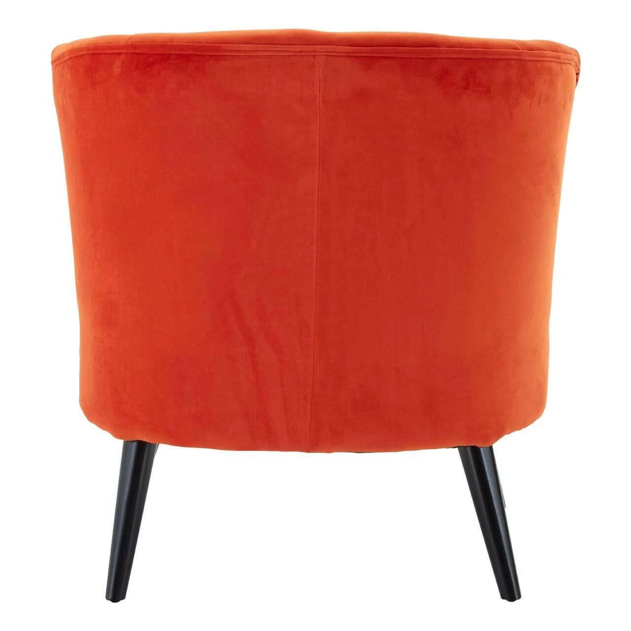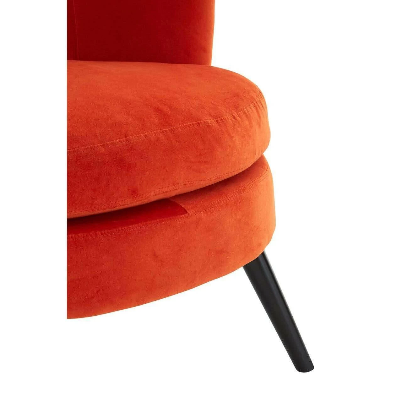 Beautiful and durable, this armchair’s orange cotton upholstery looks great and is smooth to the touch. Its plump cushion and supportive backrest combine to create an inviting place to sit. The chair is supported by smooth and slim natural birchwood legs, painted black to complement the upholstery.
