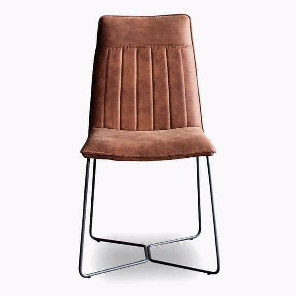 The Solo Dining Chair effortlessly marries comfort and minimalist elegance, with its upholstered seat and sleek black powder-coated frame. The chair’s clean lines and simple design are a nod to understated sophistication, while the vintage tan fabric exudes a touch of timeless charm. With careful attention to detail, the stitching adds subtle texture and visual interest, elevating the overall aesthetics. A perfect blend of style and practicality, the Solo Dining Chair provides a comfortable seating solution that transcends trends, making it an ideal addition to any dining space seeking a harmonious fusion of comfort and enduring design.