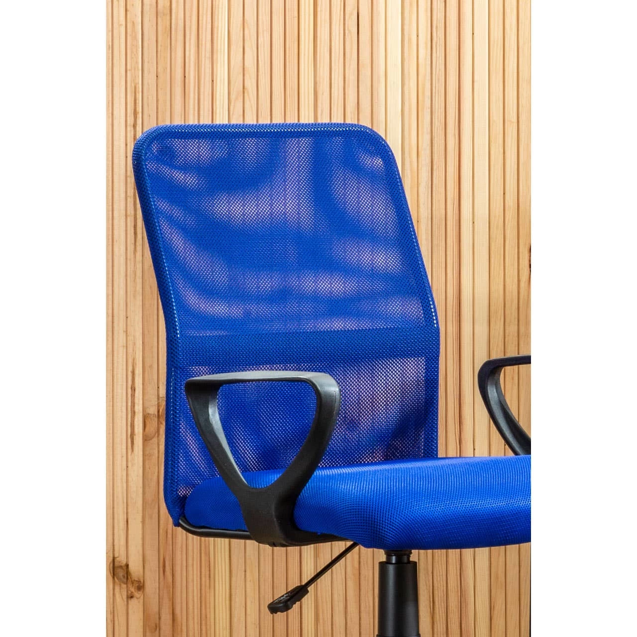 This dark blue home office chair comes with a mesh back and lumbar support, offering a cosy seating experience. The foam-padded seat has ergonomic armrests for added assistance to hands while working, and the swivel base is ideal for mobility.