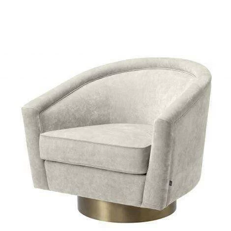 Relax to the max in the stylish Catene Swivel Chair. A contemporary design with hints of retro flair characterises this beautiful barrel chair that rests on a matte gold swivel base for a modern touch. The Clarck sand upholstery gives this furniture piece a sumptuous look.