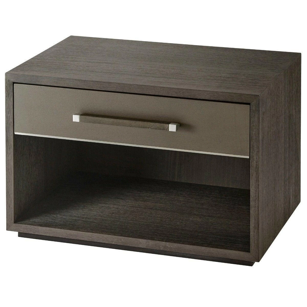 Anise Finish Add a luxurious appeal to the master or guest bedroom with this TA Studio Large Bedside Cabinet Lowan in Anise. A lesson in modern and timeless design, this night table’s simple lines compliment the refined style of a contemporary bedstead, yet the rich tones and metal details invest layers of classic character. The frame and handles are handcrafted from Lati Veneer and applied with a dark Anise finish. Eclipse Leather Drawer To create contrasting points of interest, the handle has brushed nickel accents, while the drawer is wrapped in dark Eclipse Leather. As well as offering enduring style, the modern bedside cabinet has multipurpose storage. On top, a sizable surface can be used for night time essentials, trinkets and a table lamp. For further storage, there is a soft-close drawer and an open compartment – to stylishly frame decorative and useful treasures. TA Studio No.1 Crafted with the hallmark artisan quality of Theodore Alexander, TA Studio No. 1 is an elegant realisation of contemporary form and function. All the pieces are designed to seamlessly work together, unified by clean lines and harmonious finishes, with an inherent sense of poise and graceful ease. The TA Studio brand encompasses a simplistic, modern style suited to a variety of settings, from luxurious townhouses and city apartments to contemporary country interiors.