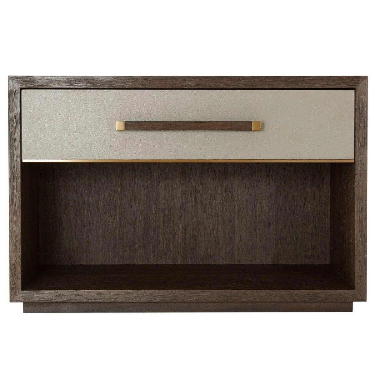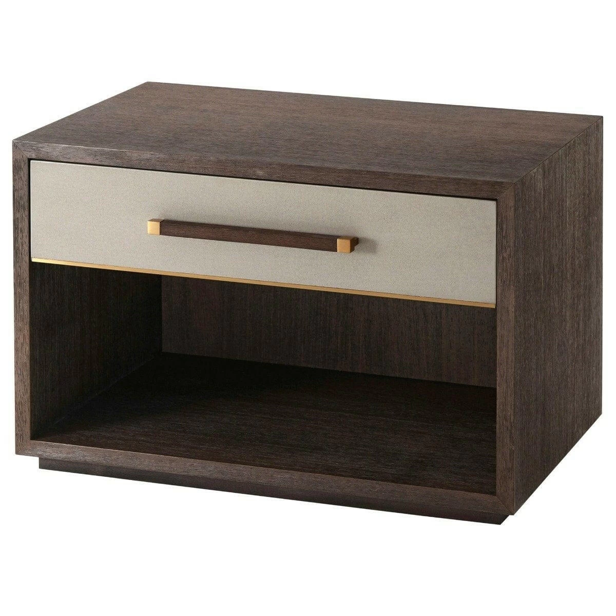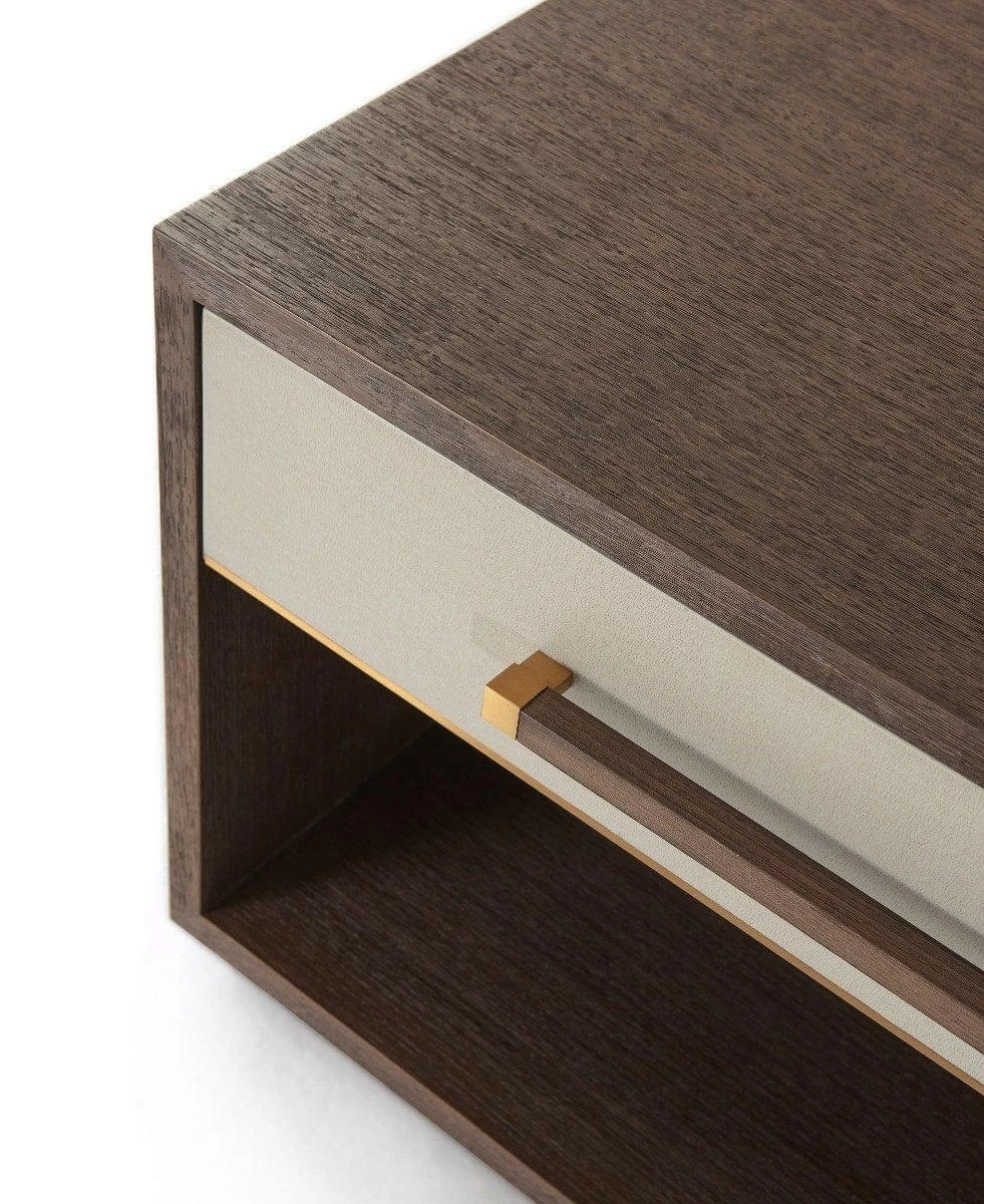 Cardamon Finish Add a luxurious appeal to the master or guest bedroom with this TA Studio Large Bedside Cabinet Lowan in Cardamon. A lesson in modern and timeless design, this night table’s simple lines compliment the refined style of a contemporary bedstead, yet the rich tones and metal details invest layers of classic character. The frame and handles are handcrafted from Lati Veneer and applied with a Cardamon finish. Singular Leather Drawer To create contrasting points of interest, the handle has brushed brass accents, while the drawer is wrapped in light Singular Leather. As well as offering enduring style, the modern bedside cabinet has multipurpose storage. On top, a sizable surface can be used for night time essentials, trinkets and a table lamp. For further storage, there is a soft-close drawer and an open compartment – to stylishly frame decorative and useful treasures. TA Studio No.1 Crafted with the hallmark artisan quality of Theodore Alexander, TA Studio No. 1 is an elegant realisation of contemporary form and function. All the pieces are designed to seamlessly work together, unified by clean lines and harmonious finishes, with an inherent sense of poise and graceful ease. The TA Studio brand encompasses a simplistic, modern style suited to a variety of settings, from luxurious townhouses and city apartments to contemporary country interiors.