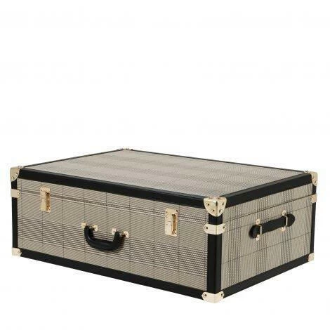 This beautiful set of 3 Bittersweets Trunks is great for storage and decoration. These vintage style suitcases. Each case features a check brown upholstery and is finished with black leather look straps. Brass hardware adds to the retro look.