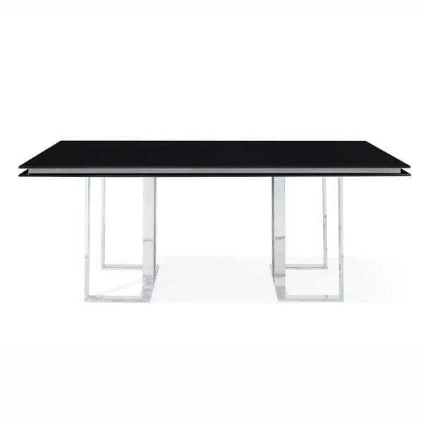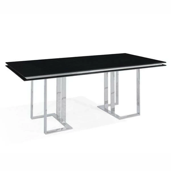 The Vivix Dining Table is a contemporary masterpiece that effortlessly blends style and function, making it an exquisite addition to any dining room. Its 12mm black glass top exudes a sense of modern sophistication, creating a sleek and elegant surface for dining and entertaining. The polished stainless steel base adds a touch of glamour and complements the table’s geometric design, showcasing an artistic interplay of lines and angles. Crafted with meticulous attention to detail, the Vivix Dining Table stands as a testament to contemporary design, offering a perfect setting for memorable meals and gatherings. With its seamless fusion of premium materials and innovative aesthetics, this dining table is a captivating centerpiece that elevates the overall ambiance and brings a touch of modern elegance to any dining space.